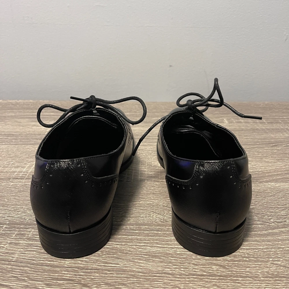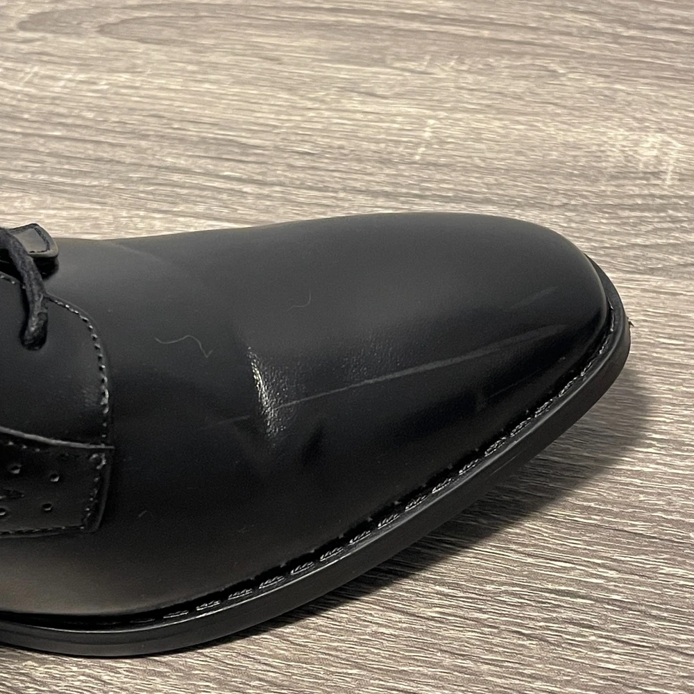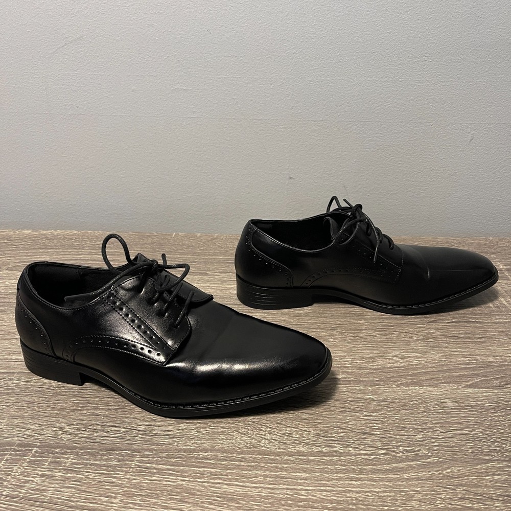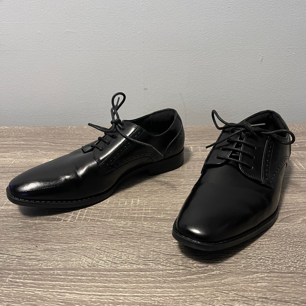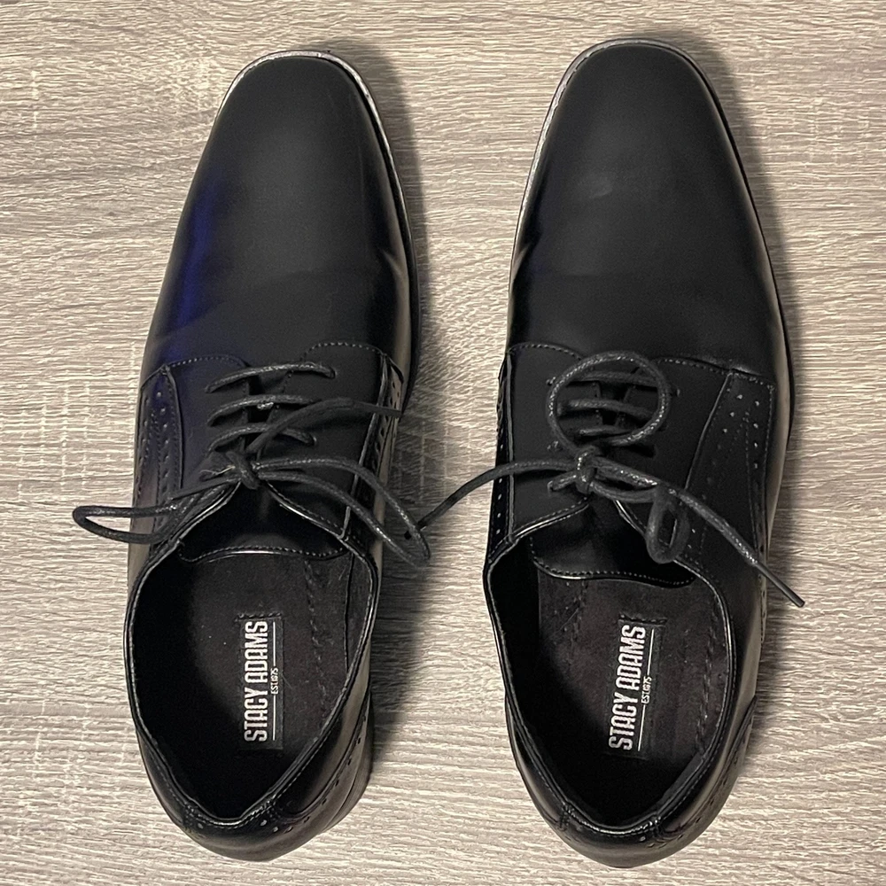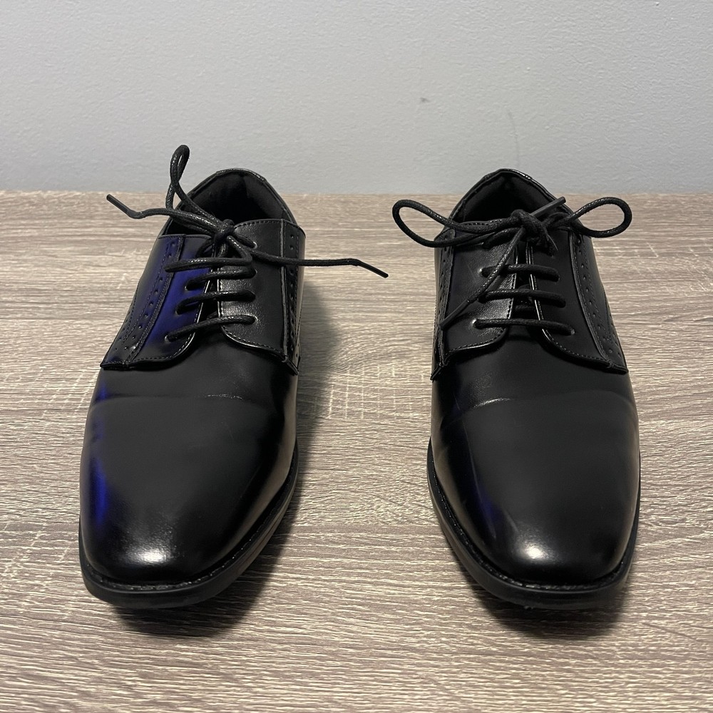 The Stacy Adams Kids Kalvin Plain Toe Oxford Boys 6M Black Dress Shoes are perfect for young boys looking to dress up for formal occasions like weddings or school events. Made from faux leather with a rubber outsole, these black shoes feature a lace-up closure and moderate cushioning for comfort. The classic Oxford style and solid black color make them versatile for all seasons, while the low top design and foam insole ensure a stylish and practical fit for active boys. The Stacy Adams brand is known for quality and timeless style, making these shoes a great choice for any young gentleman.