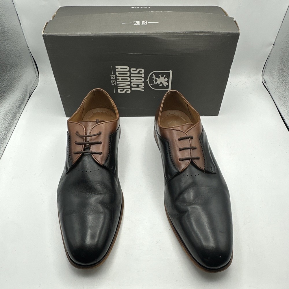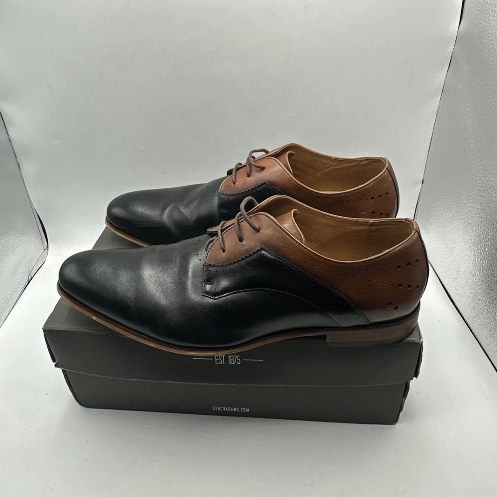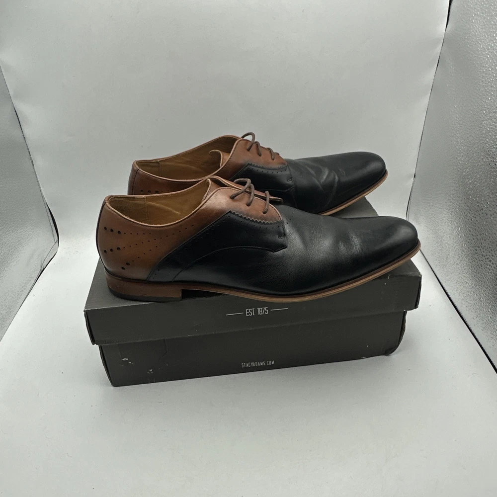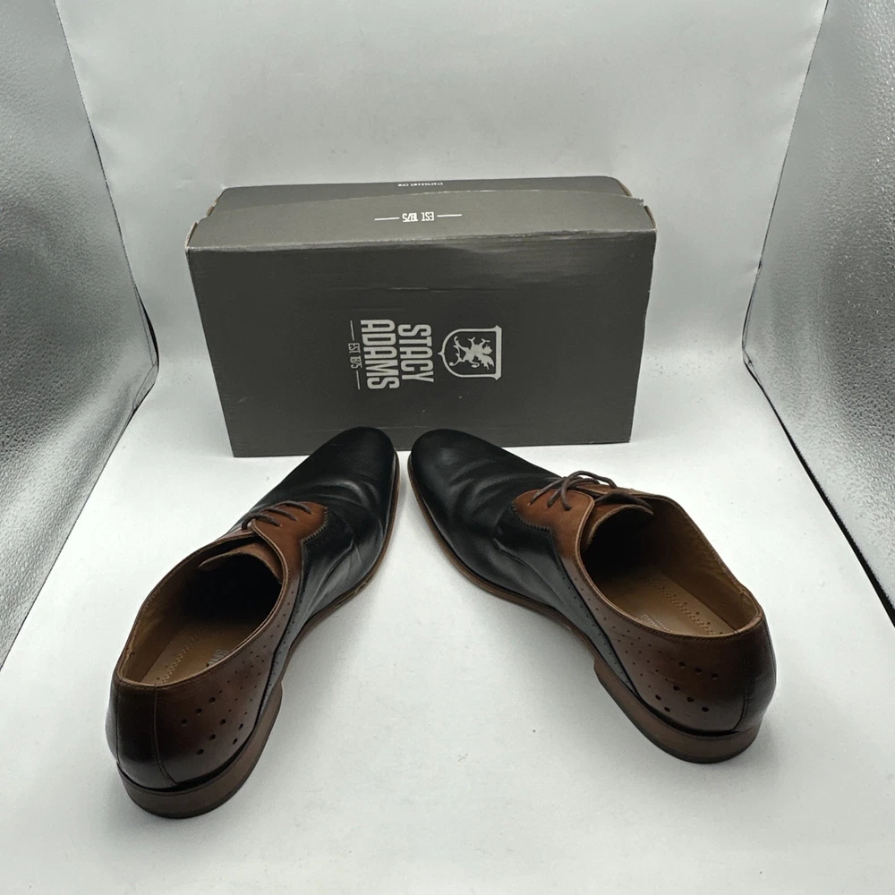Stacy Adams Men's Sz 13 Shoes Black Brown Leather Plain Toe Savion Office Dress