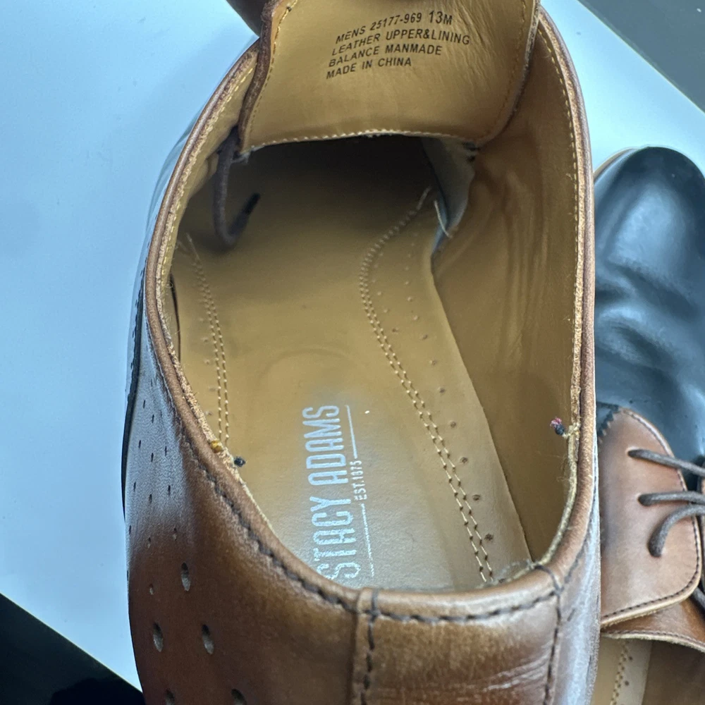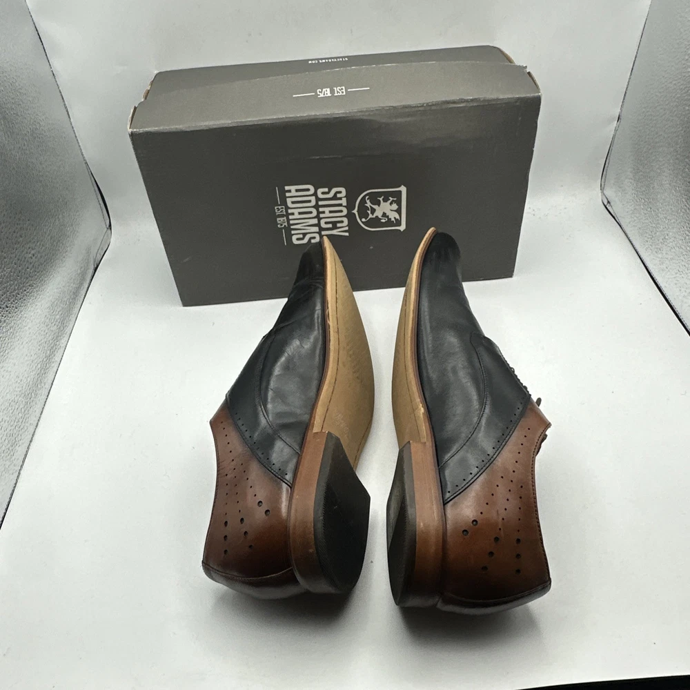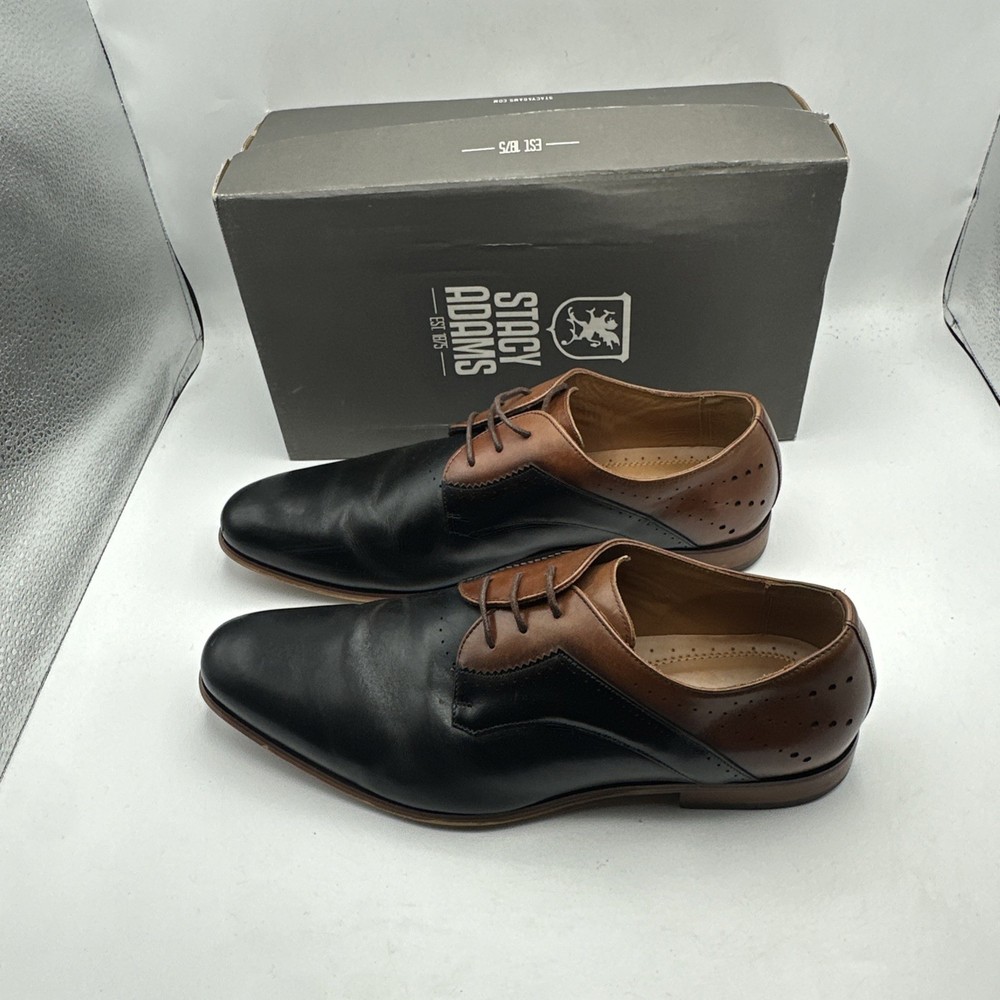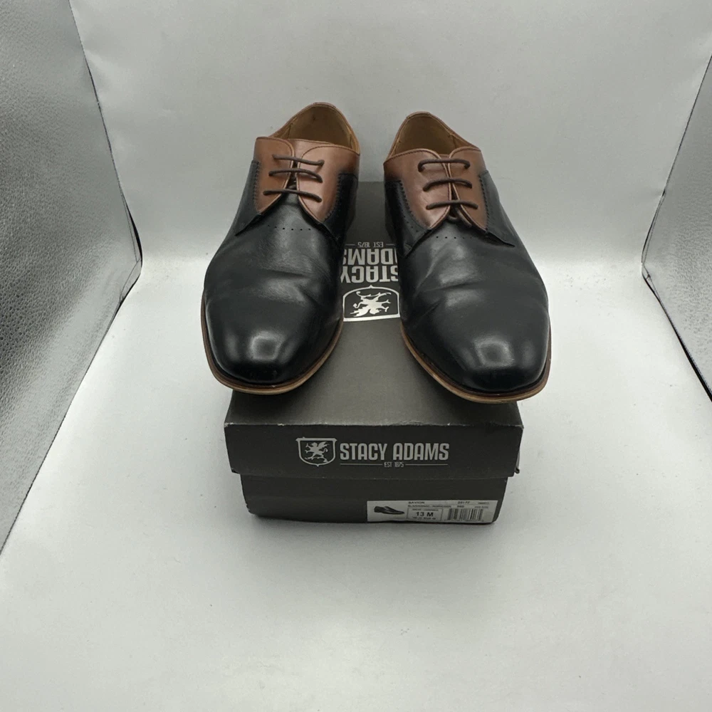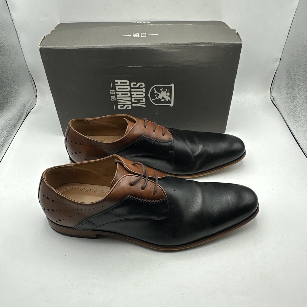 Stacy Adams Men's Sz 13 Shoes Black Brown Leather Plain Toe Savion Office Dress