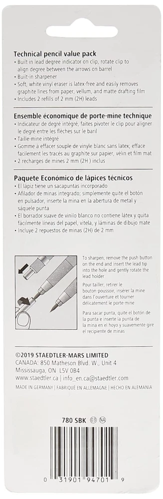Staedtler Mars Technical Mechanical Pencil Set, Blue, (788 SBK4) Technical mechanical pencil set: 2 mm pencil, eraser, 2 ea 2H lead refills. For writing, sketching, drawing Metal clip, push button advance Integrated lead pointer in push button Made in Germany Simply the best and one of the most versatile pencil lead holders around. The formula is secret -- the pencil is world-famous. Staedtler's success story began over 180 years ago, with manufacturing pencils, which has given us quite the head start on research, innovation and engineering! To this day, first-class manufacturing processes and sustainably sourced materials guarantee outstanding and consistent product quality. Staedtler Technico leadholder mechanical pencils are made for times when you need dark, broad and dense graphite coverage. From drawing to drafting, at the construction site, in the studio or classroom, the Technico is the choice for always-sharp, break-resistant use. This technical pencil is not only an ideal creative companion for drawing and sketching purposes. But engineers and architects also rely on it for drafting, ruling and annotating. Whether it's scientific or creative endeavors, in the home, office or classroom, Staedtler helps bring ideas to life. Shipping We offer FREE shipping on all orders! We ship within Three business days of payment, usually sooner. We use a selection of shipping services such as UPS, FedEx, USPS etc. We only ship to the lower 48 states, no APO/FPO addresses or PO Boxes allowed. Local pickups and combined shipping options are not provided at this time. Return You can return a product for up to 30 days from the date you purchased it. Any product you return must be in the same condition you received it and in the original packaging. Please keep the receipt. Payment We accept payment by any of the following methods: PayPal Please pay as soon as possible after winning an auction, as that will allow us to post your item to you sooner! Feedback Customer satisfaction is very important to us. If you have any problem with your order, please contact us and we will do our best to make you satisfied. Contact Us If you have any queries, please contact us via ebay. We usually respond within 24 hours on weekdays. Please visit our eBay store to check out other items for sale! Thank you for shopping at our store.