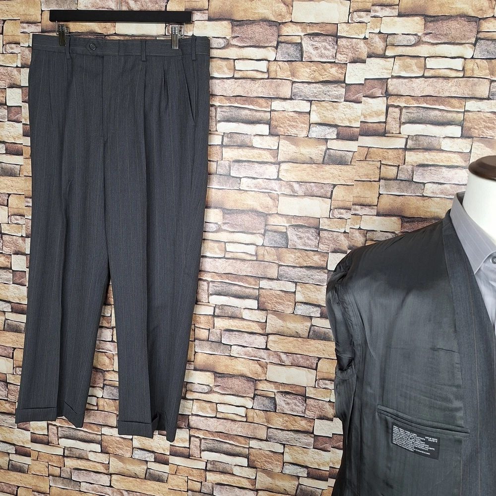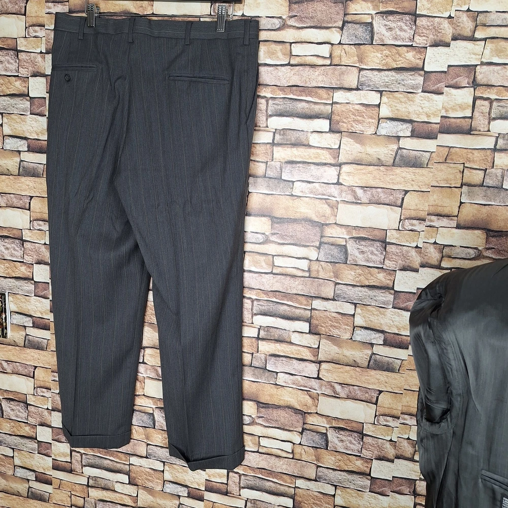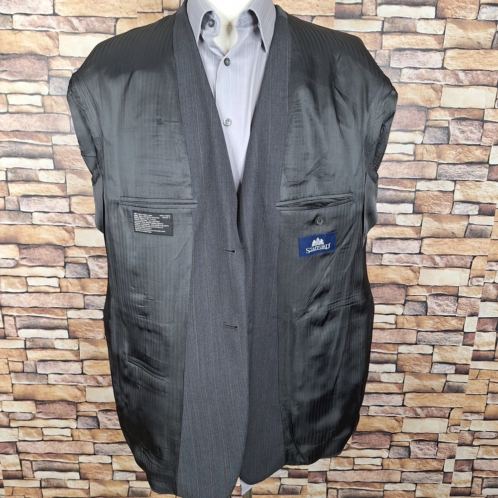 Stafford 2 Piece Suit Mens 44S 34X28 Gray Stripe Wool Ventless Quality used condition. Please check out the measurements before buying to ensure a perfect fit. Shirt Size on Label 44S Shoulder- Hem 30.00'' Shoulder- Shoulder 20.00'' Shoulder- Wrist 23.50'' Armpit- Armpit 24.00'' Top button 23.00'' Everything ships within a day. Feel free to message me with any questions. Thank you very much. 12/9/24 Pants Pleated Cuffed Lined Quality used condition. Please check out the measurements before buying to ensure a perfect fit. Pants Size on Label Seam (Outer) 38.00'' Waist 34.00'' Waist- Crotch 11.00'' Inseam 28.00'' Extra inseam fabric 1.20'' Everything ships within a day. Feel free to message me with any questions. Thank you very much. 12/9/24