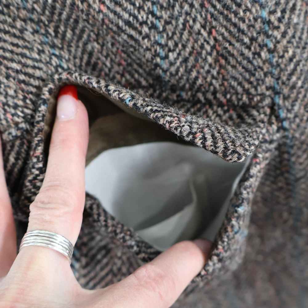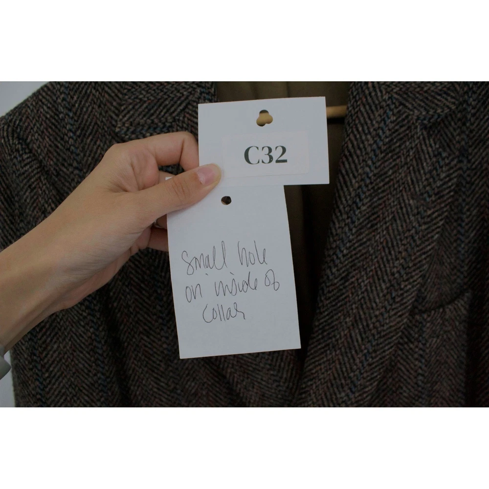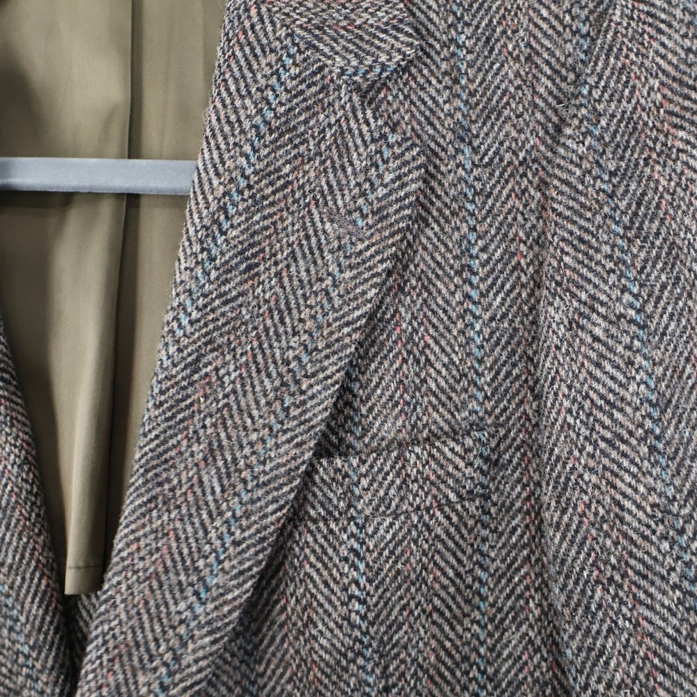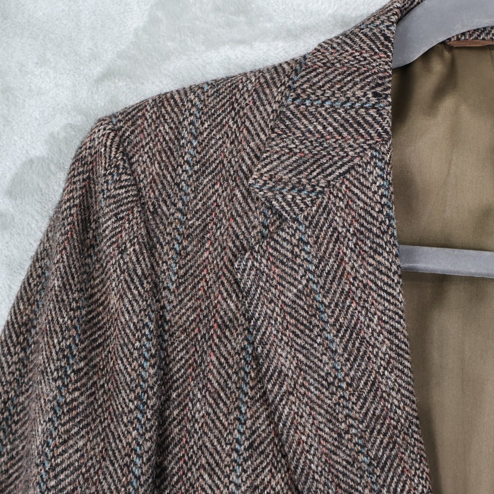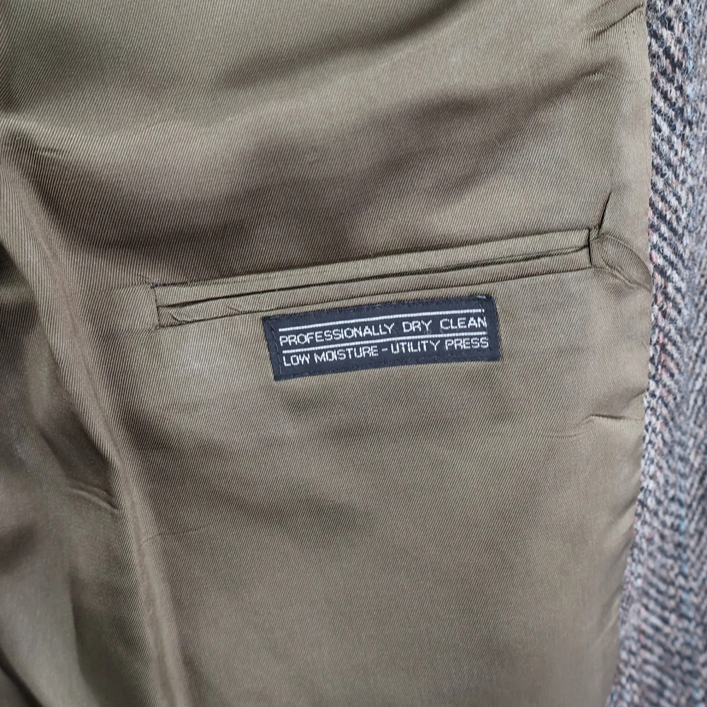Classic mens blazer, a handsome fusion of heritage and style. This sophisticated piece features a timeless herringbone pattern in rich, earthy tones, complemented by a classic three-button closure and notched lapel. The blazer is fully lined, and includes functional pockets for added practicality. The handwoven Scottish wool provides warmth and durability, making it a versatile layering piece. Perfect for smart-casual events, weekend getaways, or adding a touch of refinement to your everyday ensemble. Size has been estimated based on measurements: Chest: 20.5" Shoulder to Shoulder: 17.5" Waist: 19" Length: 31.5" Sleeve Length" 26.5" Keywords: Preppy, Academia, Professor, Classic, Old Money, Country Club C3 •All clothing items have been steam sanitized or washed. •Please compare the measurements to something you already own.