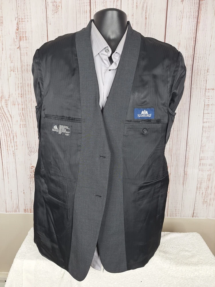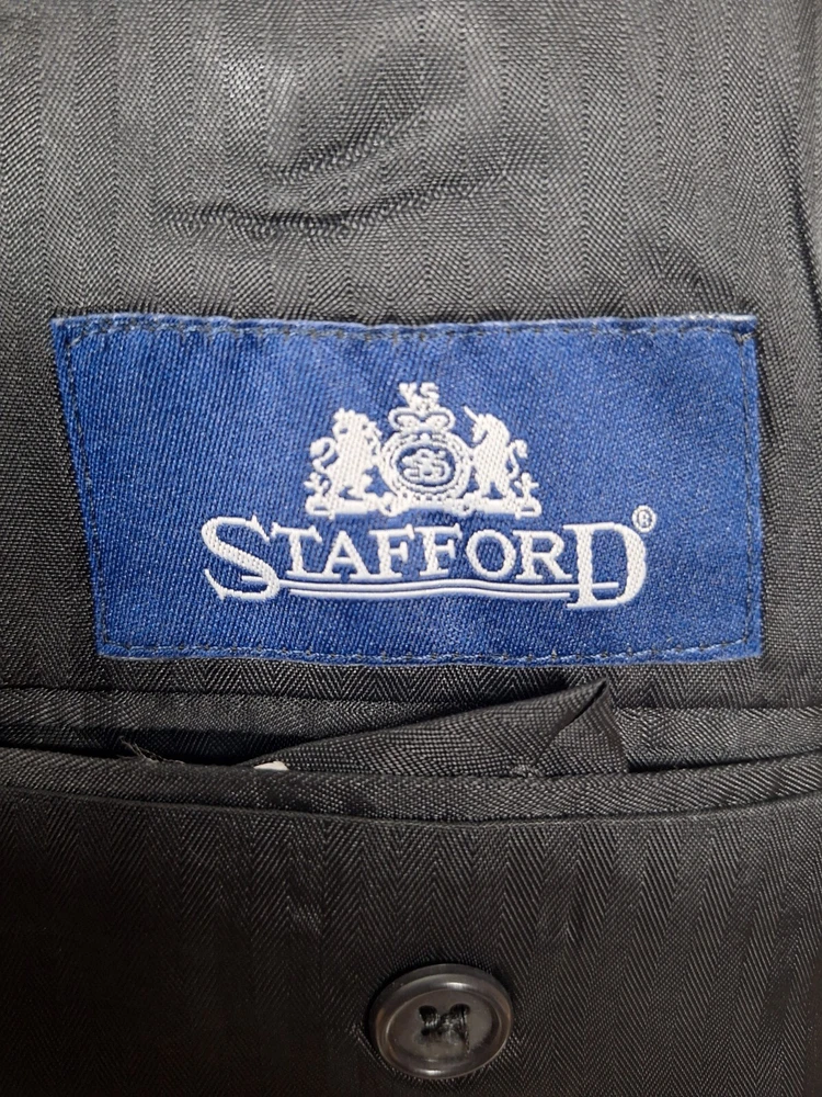 Stafford Jacket Blazer Mens 44R Charcoal Single Vented Wool Quality used condition. Please check out the measurements before buying to ensure a perfect fit Shirt Size on Label 44R Shoulder- Hem 33.00'' Shoulder- Shoulder 19.00'' Shoulder- Wrist 24.50'' Armpit- Armpit 23.00'' Top button 22.00'' Everything ships within a day. Feel free to message me with any questions. Thank you very much. 8/2/24