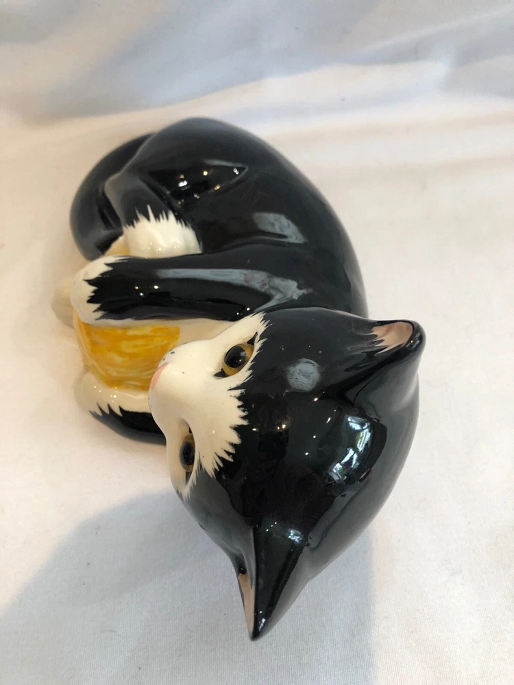 Staffordshire Just Cats & Co - Ceramic Cat Playing with Ball - Width: 22cm - Depth: 13cm - Height: 11cm -