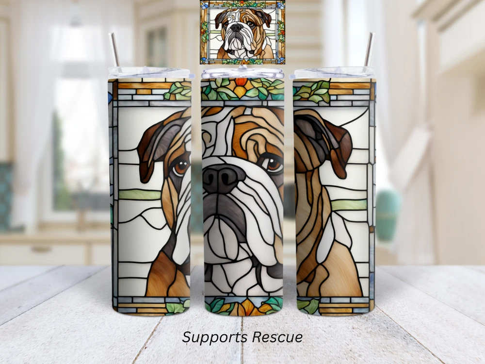 Stained Glass English Bulldog Vibrant 20 oz Stainless Steel Insulated Tumbler