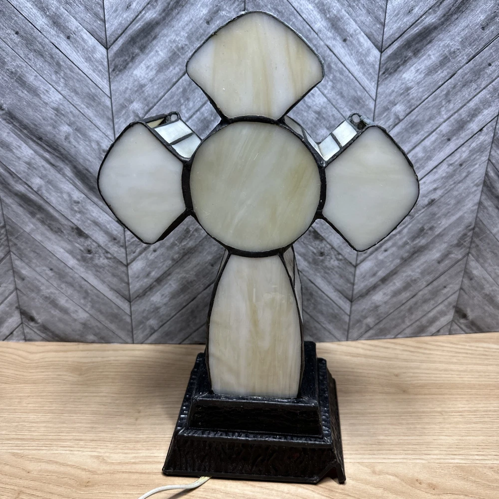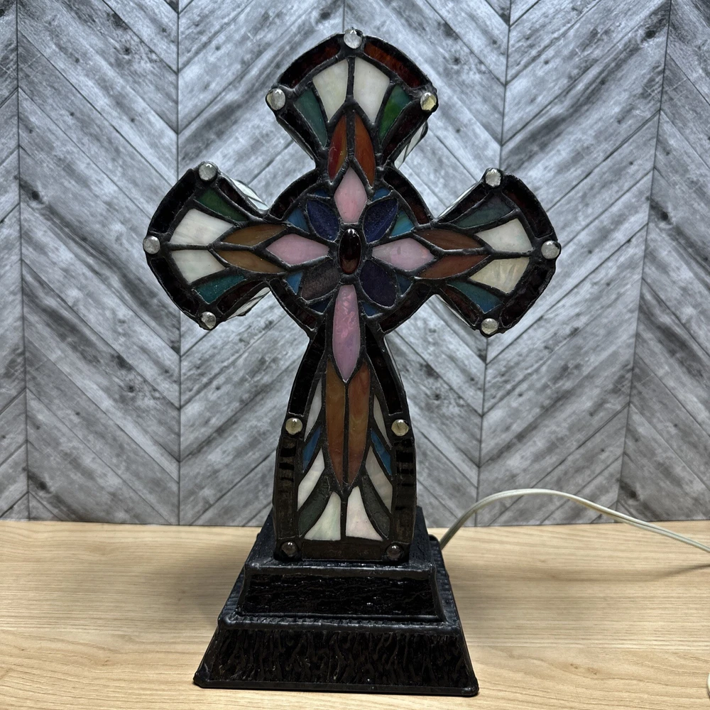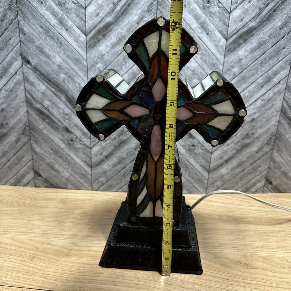 Stained Glass Lighted Cross Tiffany-style Lamp Desktop 12” Tested, Working