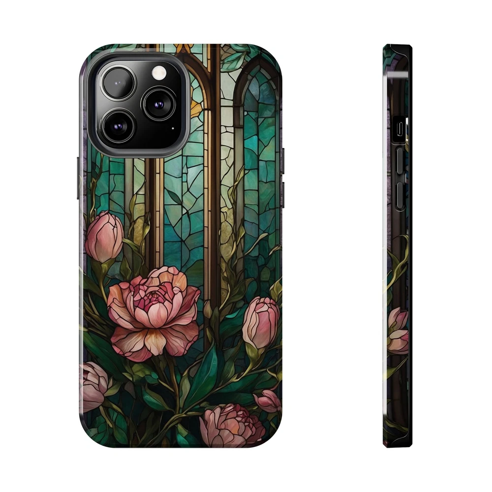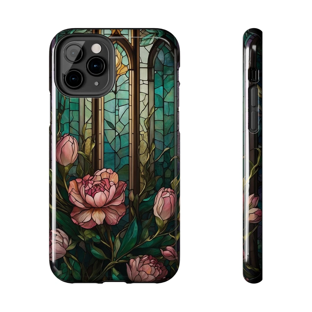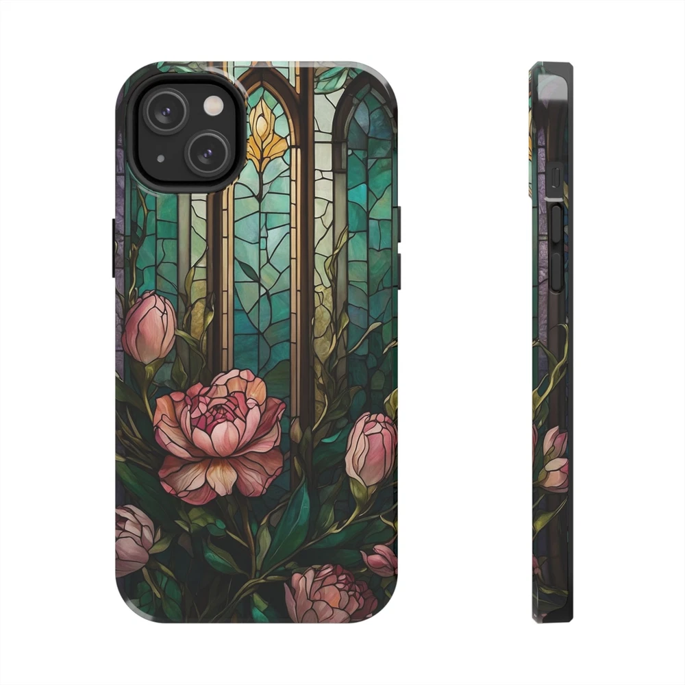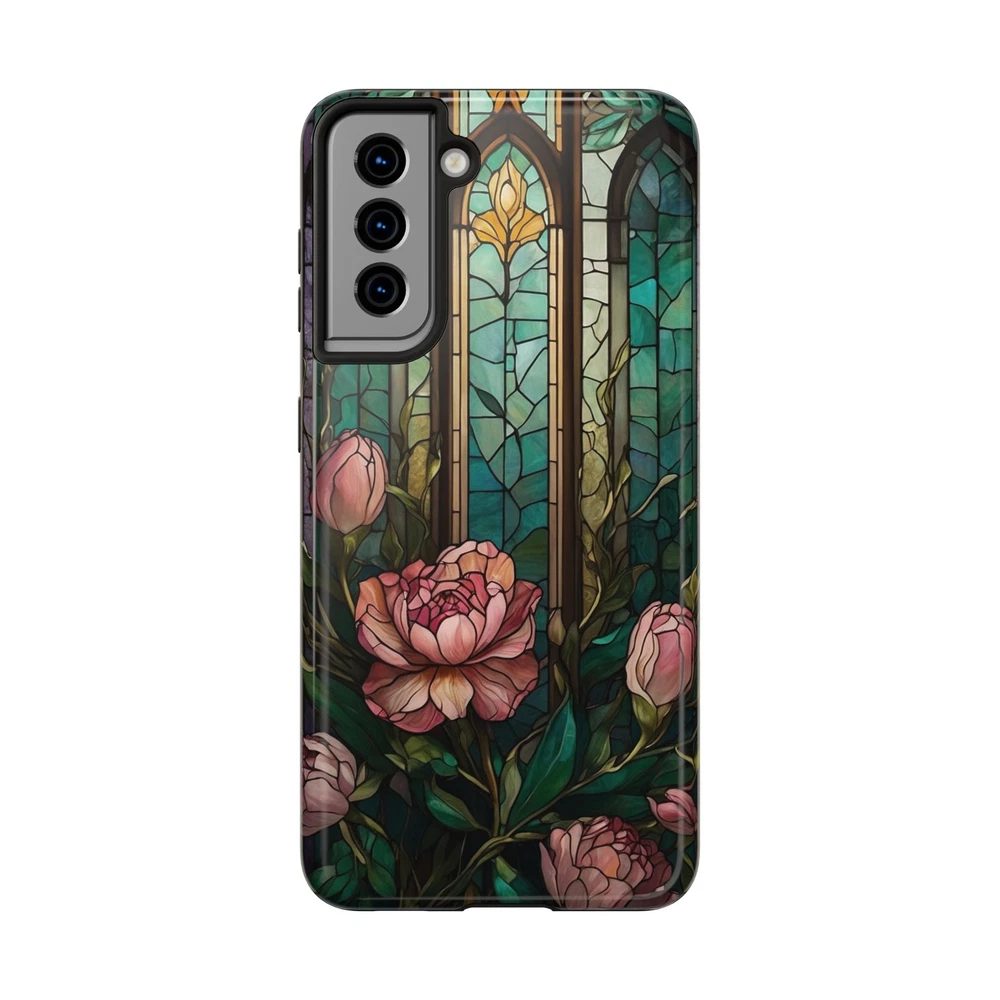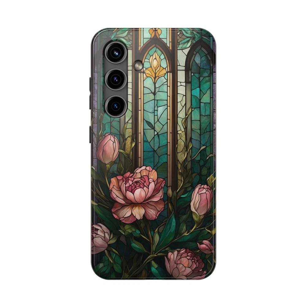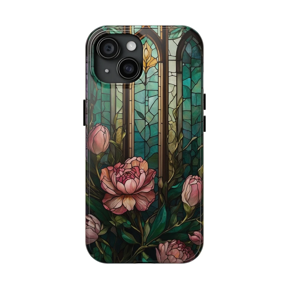 This Phone Case features a stained glass design with soft pink roses and intricate arches, creating a serene and majestic look. Perfect for those who appreciate elegant and spiritual aesthetics. Ideal for gifting on birthdays, Mother's Day, or as a thoughtful thank you gesture. Product features - Extremely strong and impact resistant Lexan plastic material - Lay-flat bezel for screen protection - Flexible rubber liner for shock absorption - Glossy finish with UV protection for long-lasting color - Supports wireless charging Care instructions - Clean with damp cotton or microfiber cloth. Add a drop of dish soap to the cloth if needed.