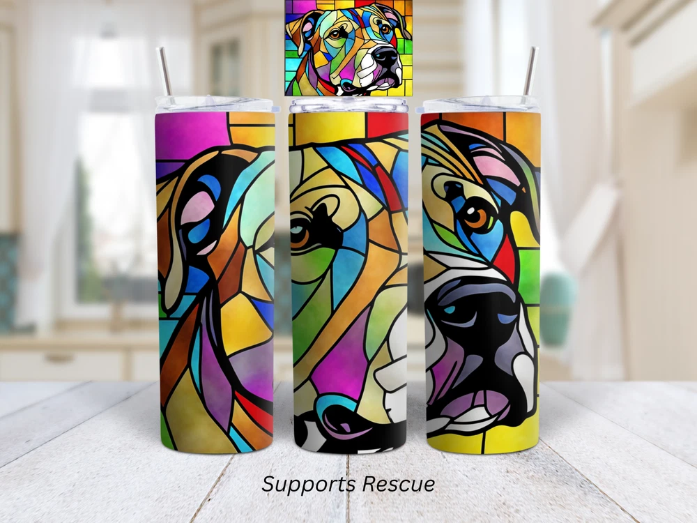 Lid Type: Slide Lock Features: Insulated, With Lid, With Straw Brand: Handmade Character Family: Dog Department: Adults, Girls, Teens Capacity: 20oz Color: Multicolor Theme: Holiday, Animals Pattern: Stained Glass Character: Dog Material: Stainless Steel, BPA-Free Plastic, Metal Type: Insulated Tumbler Beverage Type: Hot or Cold