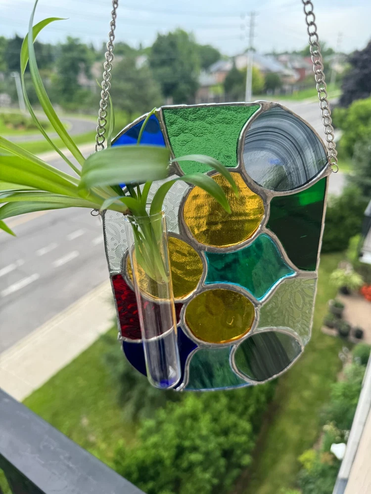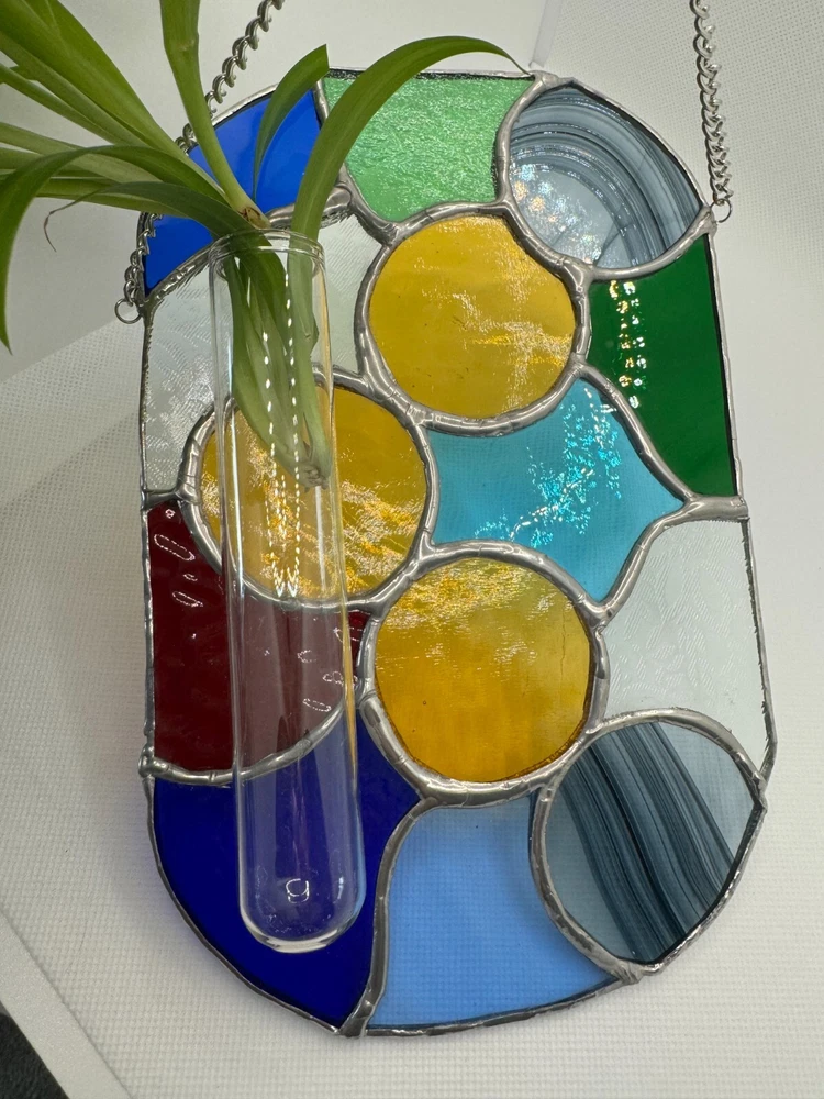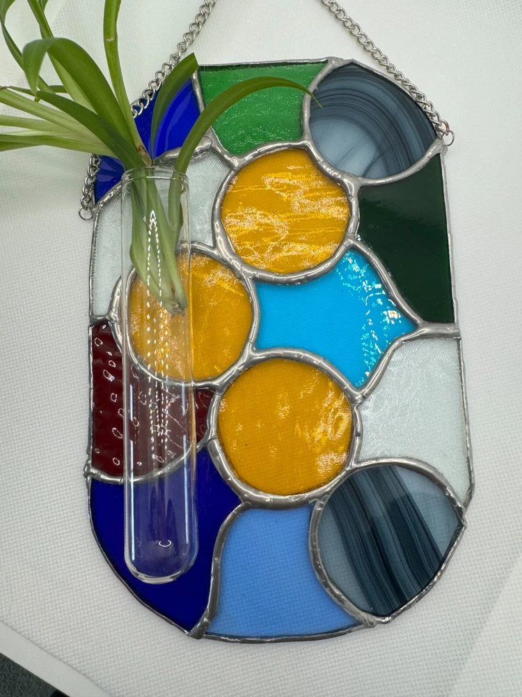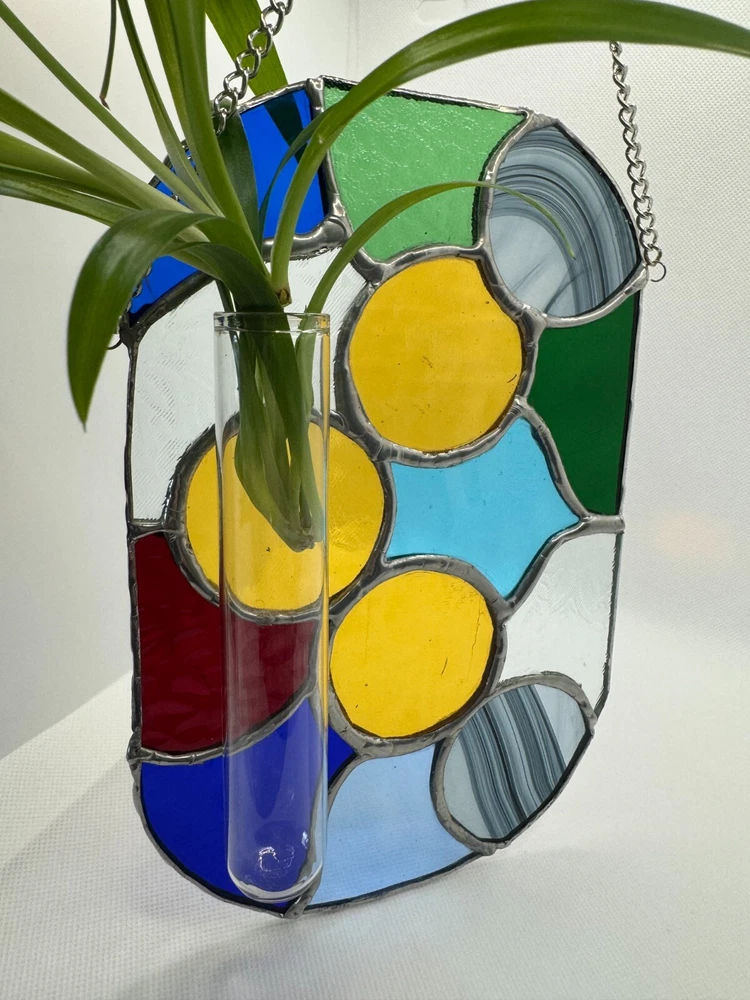 Stained Glass Tiffany Abstract Handmade Panel With Cuttings Propogator