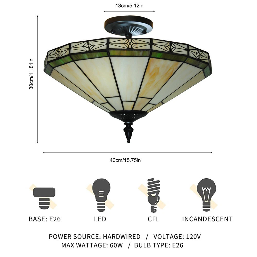 About this item Size: 13.75in wide x 11.81in high.Chandelier canopy: 5.12in wide. Real Tiffany lamp: handmade, stained glass shade, all welded together by high temperature, plastic can not withstand high temperature welding, the weight of glass is 2-3 times more than plastic. Reliable quality, never fade. 💡【Suitable for Various Occasions】This Tiffany lamp be a retro & fashionable decor for your house. Perfect for kitchen, dining room, hallway, foyer, entryway, nursery, entrance way, hallway, bedrooms, sink, dining table, Cafe, restaurant, study, office, warehouse, club and etc. 💡【2-Light & E26 Bulb Socket】This kitchen lights ceiling features 2 heat-resistant standard E26 bulb sockets (Max 60W, BULB NOT INCLUDED). Compatible bulbs: CFL, Halogen, Incandescent, or LED. Voltage: 110-120V Stained Glass Tiffany Style Hanging Lamp Pendant Light Ceiling Lighting Fixture About this item Size: 15.75in wide x 11.81in high.Chandelier canopy: 5.12in wide. Real Tiffany lamp: handmade, stained glass shade, all welded together by high temperature, plastic can not withstand high temperature welding, the weight of glass is 2-3 times more than plastic. Reliable quality, never fade. 💡【Suitable for Various Occasions】This Tiffany lamp be a retro & fashionable decor for your house. Perfect for kitchen, dining room, hallway, foyer, entryway, nursery, entrance way, hallway, bedrooms, sink, dining table, Cafe, restaurant, study, office, warehouse, club and etc. 💡【2-Light & E26 Bulb Socket】This kitchen lights ceiling features 2 heat-resistant standard E26 bulb sockets (Max 60W, BULB NOT INCLUDED). Compatible bulbs: CFL, Halogen, Incandescent, or LED. Voltage: 110-120V, It can be dimmable when you used with a dimmable bulb and compatible dimmer switch. Fits room size 22.96ft-49.2ft Easy Installation : All mounting hardware required for installation of chandelier are included in the package. Just need to follow the illustrated instructions of the hanging light provided for assembly and installation! What you get: 1 x Tiffany Light (Bulbs Not Included) 1 xScrews sets 1 xInstruction Manual Tips: -Please make sure the light is securely supported and is disconnected from power when installing. -Installing the light bulbs before hanging the makes the installation easier. ✔[Easy to install] Open the package and check the appearance of the chandelier. Follow the instructions to group the lights together and test their effects before installing them on the ceiling. In the process of assembling the lamp, please pay attention to check the position of each wire interface and tighten the fixing screws. Payment Delivery details Terms of sales About us Contact us Payment We accept ebay payment 。 Fees such as import duties, taxes are not included in the item price or shipping costs. These charges are the buyer's responsibility. Delivery details Shipping: 2-9 working days to: USA Terms of sales We maintain high standards of excellence and strive for hundred percent customer satisfaction. Feedback is very important to us. We hope that you contact us immediately before you give neutral or negative feedback, so that we can address your concerns. It is impossible to address issues if we do not know about them! About us Your satis faction is our ultimate goal. We work hard to earn your trust and future business. Our certified technicians have tested each item before shipping. The unit comes with 1 year limited warranty on all manufacturing defects. a) If you receive a defective item, you may return it or ask for a discount. Please contact us within 14 days after you receive the package. b) What you returned must be intact and in its original packaging as re? u. Customer is responsible for shipping costs of the returned item. c) We will cover the cost of shipping back t with the shipping rate indicated in the registration page. We will send you a new unit or refund the full payment you paid. Thank you. Contact us Business Hour Business Hour: Monday To Friday: 8:30 AM to 5:00 PM (Beijing China time) Due to time zones, our reply to your questions may not be immediately. But within above working time, we will reply your email within 24 hours. If it's non-workdays, please kindly be patient and wait till Monday. Please contact us with ebay message. Please feel free to contact us if you have any questions. Monday To Friday: 8:30 AM to 5:00 PM (Beijing China time) Due to time zones, our reply to your questions may not be immediately. But within above working time, we will reply your email within 24 hours. If it's non-workdays, please kindly be patient and wait till Monday. Please contact us with ebay message. Please feel free to contact us if you have any questions.