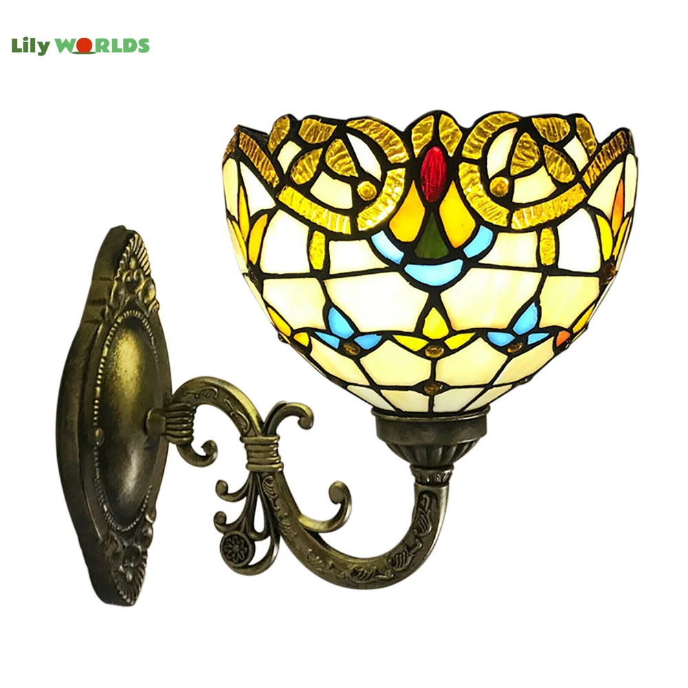 Stained Glass Wall Lamp Tiffany Style Bathroom Wall Sconce Light Retro Fixture