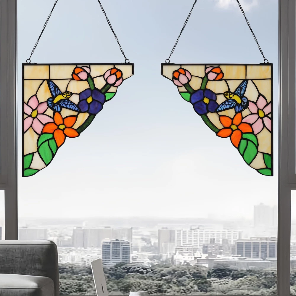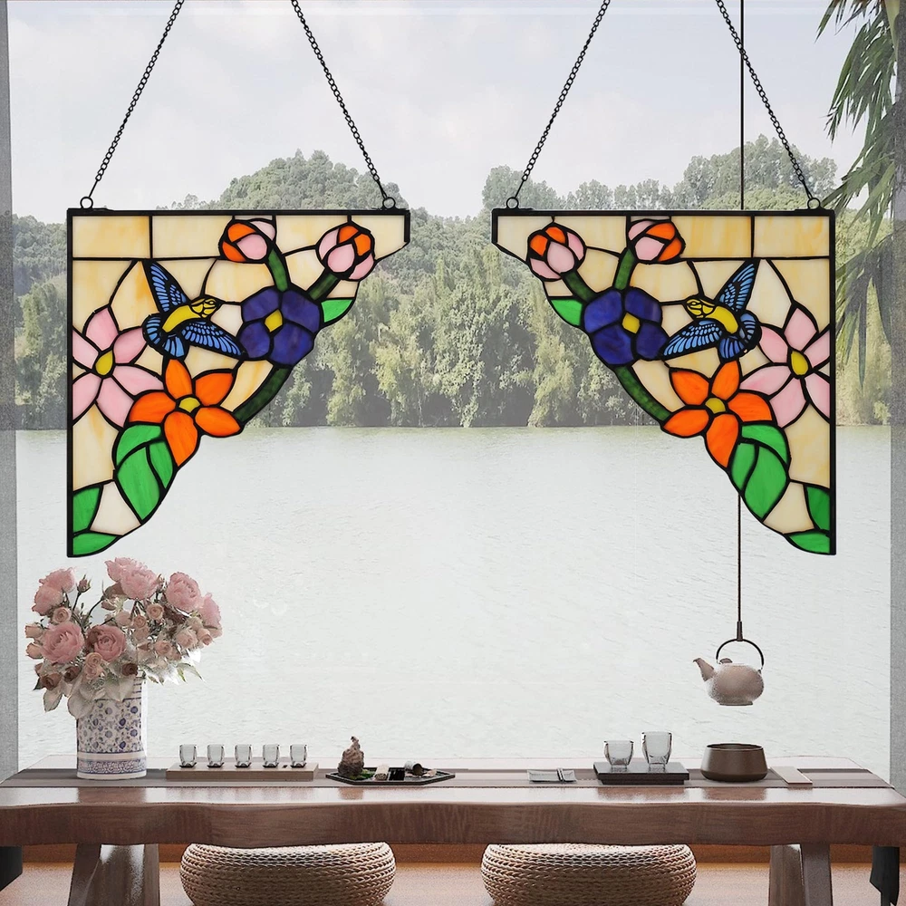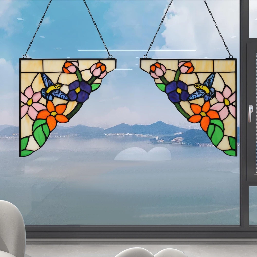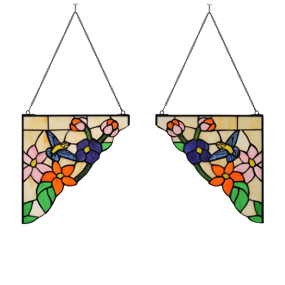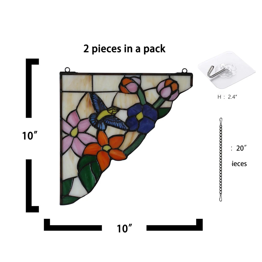 Handcrafted:Skilled artisans have carefully handcrafted this stained glass window panel in the timeless Tiffany style, using only authentic colored glass. Each piece of glass has been meticulously cut by hand and then assembled and soldered with copper foil. The panel is highly durable and guaranteed to maintain its elegant beauty, never fading over time. With proper care and maintenance, this stunning piece can be enjoyed for many decades to come. Panel Size: This set of stained glass panels contains 2 pieces of stained glass window hangings perfect for window and wall decorations. They are 10 inches (25 cm) high, 10 inches (25 cm) wide, and weigh 1.4 pounds a piece. This set Includes a 21-inch chain and hook for easy hanging, and adjustable length for added convenience. Timeless Style: Tiffany stained glass is a classic style that has been popular since the 1800s. The panels come to life when the sun shines through them, making it a great way to enjoy the morning sunshine. Widely Used: Tiffany stained glass panels are versatile and can be used both indoors and outdoors, depending on the finish. They make a wonderful gift for loved ones on special occasions such as Thanksgiving, Christmas, Anniversaries, Holidays, or any time of the year. These beautiful Tiffany window panels are sure to bring a bright and cheerful touch to their lives. After-sales Service: Upon receiving the product, we recommend wiping the surface with anti-rust oil to achieve a smooth and shiny finish. Our customer service team is dedicated to providing quick and friendly responses. 24 hours services everyday. Any problem you meet, Please contact us in time, We will settle the problem for you soon.