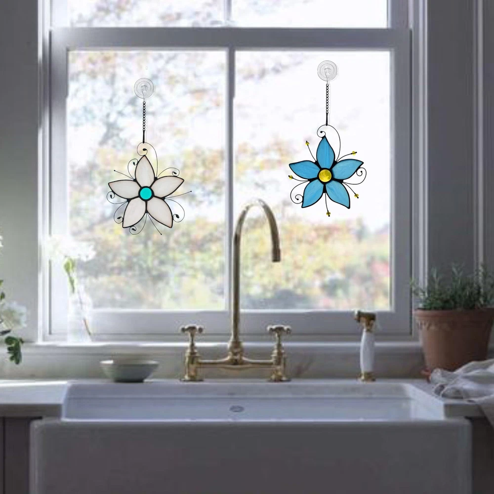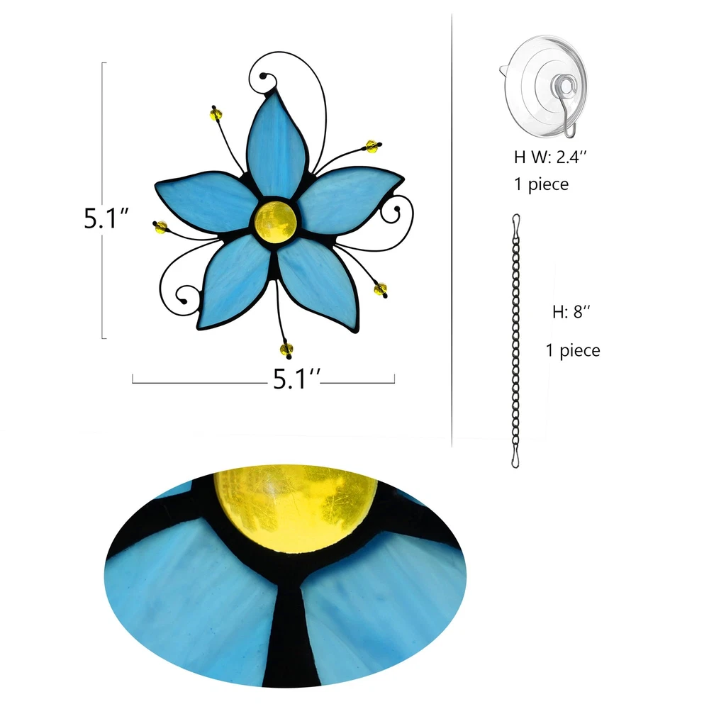 Please note: it is real stained glass handmade artwork,Forget me not flower decoration makes your home look warm and romantic,flowers suncatcher for window, stained glass window hanging and wall art ornaments. FEATURE:Stained glass suncatcher and Wall Art are the modern way to brighten the walls or window of your home, Bring joy to the family. It is sure to captivate wherever it is hung. WINDOW DECOR AND WALL DECO:A colorful andattractively stained glass art to catch everyone’s attention.Perfect choice for wall decor such as home, kitchen, living room, bedroom, guest room, bathroom, dinning room, meeting room, hallway, nurseries, coffee house, condo house, hotels, inn, spa, lounge, sauna and other spaces of home, office, business, reflection and relaxation. PLEASE NOTE:An expression of friendship and caring...A surprise and special gift for Dad, mom, Grandpa, grandma and good friends. SINCERELY SUGGESTS::When you buy, please make sure your products are supplied by DECOR. DECOR promise to offer satisfacted products.If any doubt or disappointed,please let us know at once, 100% satisfied after sale service to you. 【 Stained Glass Flower Decor】REAL STAINED GLASS WINDOW HANGING:This hand-crafted flowers forget me not hanging could serve not only as window decor, but as wall decor as well. stained glass flower adds color and light into any space through the gorgeous stained glass 【Flower Gifts for Women】Forget-Me-Not flowers decorations made of real tiffany glass,stained glass flower ornaments is the perfect gift to express your gratitude for mom, grandma, sister and good friend 【Flower Decorations Suncatcher for Window 】NEW DESIGN AND DECORATION:Stained glass flower decorations designed and produced by experienced artists.when held up to the light it looks fantastic- the colors are very vibrant.it is sure to captivate wherever it is hung 【Amazing Stained Glass Flower Decorations 】EASY TO HANG:with hooks and accessories, ready to hang size is 5.1"×5.1" colour is blue 【Premium Material】SATISFACTION SERVICE:If you have any questions about our stained glass window hanging, please feel free to contact us. we strive to provide you with the best quality product and the best service.