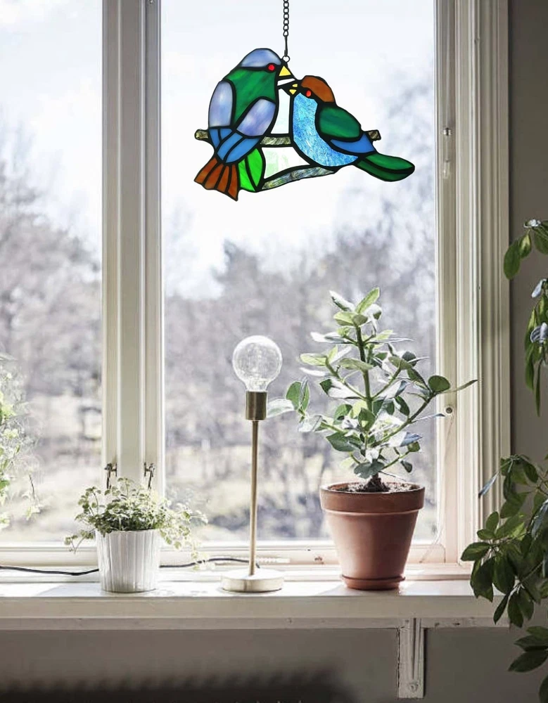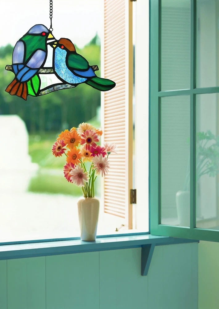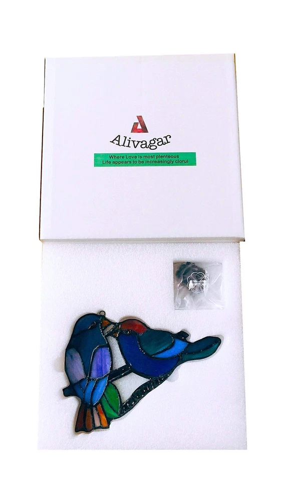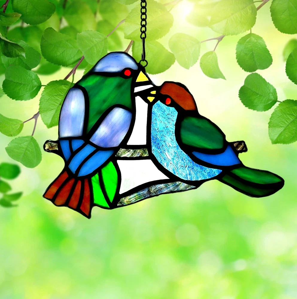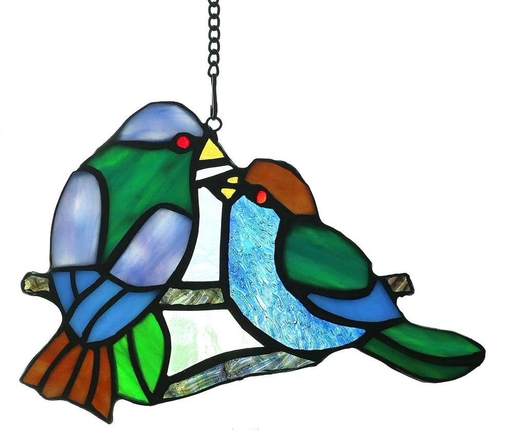 , a brand dedicated to the exquisite art of handcrafted Tiffany style Stained glass. Our meticulous process includes cutting, shaping, copper foiling, assembling, soldering, and polishing. Each piece is a testament to our skilled artisans' dedication, showcasing the unique charm and craftsmanship of Tiffany style stained glass. As light passes through the intricately designed colored glass, it creates a captivating play of colors and textures, infusing your space with an intoxicating ambiance. Let 's handmade creations adorn your life, making your home more beautiful and your mood uplifted. 1.Material: Our stained glass decor bird is made with high-quality stained glass, known for its vibrant and beautiful colors. Each piece of glass is carefully selected to create a harmonious and visually stunning design. 2.Handcrafted: Every stained glass bird is handcrafted by skilled artisans, ensuring every detail is perfected. The intricate craftsmanship adds a touch of elegance and uniqueness to each piece, making it a perfect gift for friends, customers, family. 3.Beautiful and vibrant: Our stained glass hangings showcases the captivating beauty of colored glass . When the sunlight filters through the stained glass, it creates a mesmerizing display of vivid colors. 4.Packaging:To ensure it arrives in pristine condition, we take great care in packaging it securely. However, in the rare event it arrives damaged or with any quality issues, please contact us immediately. 5.Suncatcher Decoration: Hang near a window where it can catch the sunlight, and watch as it transforms your space into a magical and enchanting display of light and color. It adds a touch of warmth and beauty to your home, creating a tranquil and inviting ambiance.