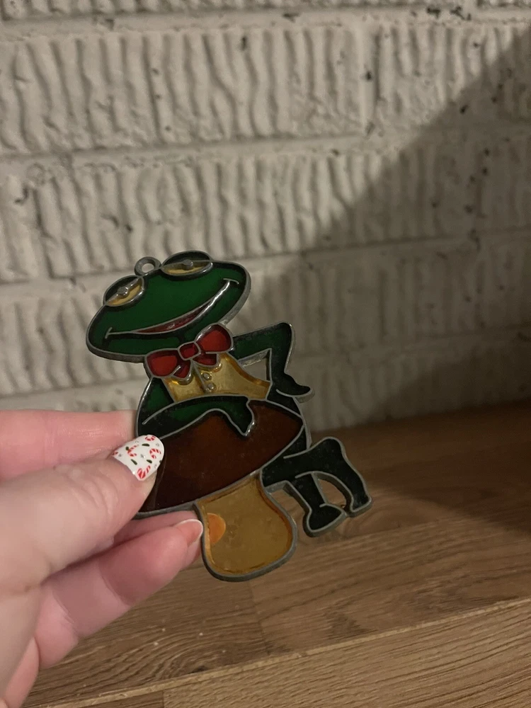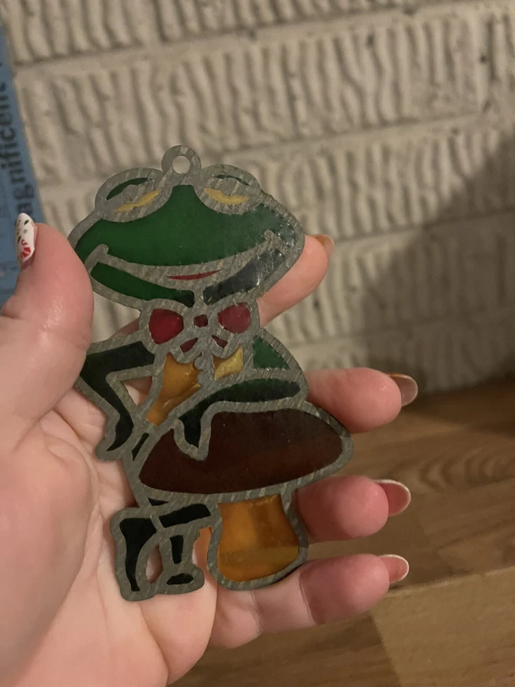 Add some charm to your kitchen or office with this beautiful Stained Glitter Glass Frog On Mushroom Suncatcher Window Decor. The intricate design of the suncatcher is sure to catch the eye of anyone who enters the room. Made from high-quality glass, the suncatcher is durable and will last for years to come. This decorative piece features a cute frog sitting on a mushroom, surrounded by a stunning glitter design. The production style of the suncatcher is stained glass, making it a unique addition to any collection. Perfect for those who love all things nature-inspired, this suncatcher will bring a touch of whimsy to any room.
