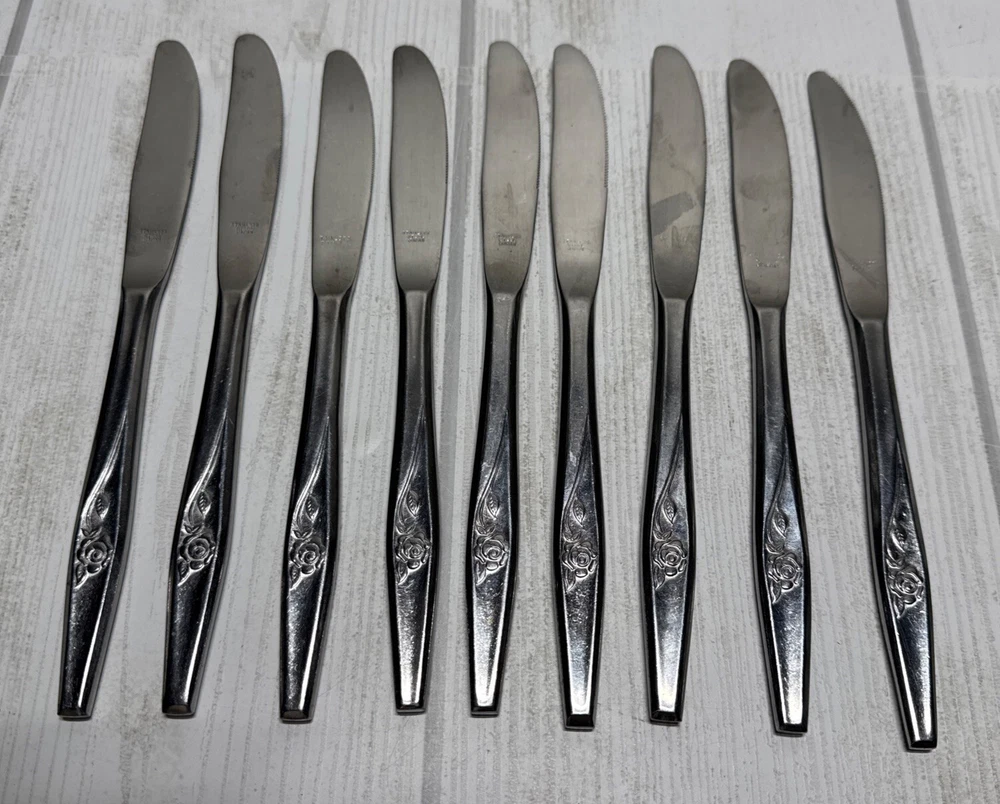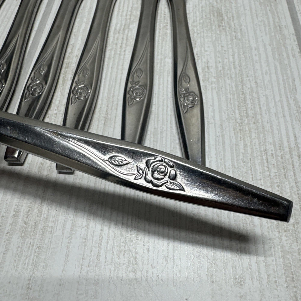 Stainless Silverware Flatware Lot of 9 Japan Floral Single Rose 8.5" pre owned in very good condition See all photos