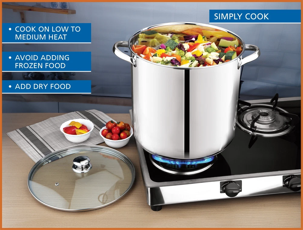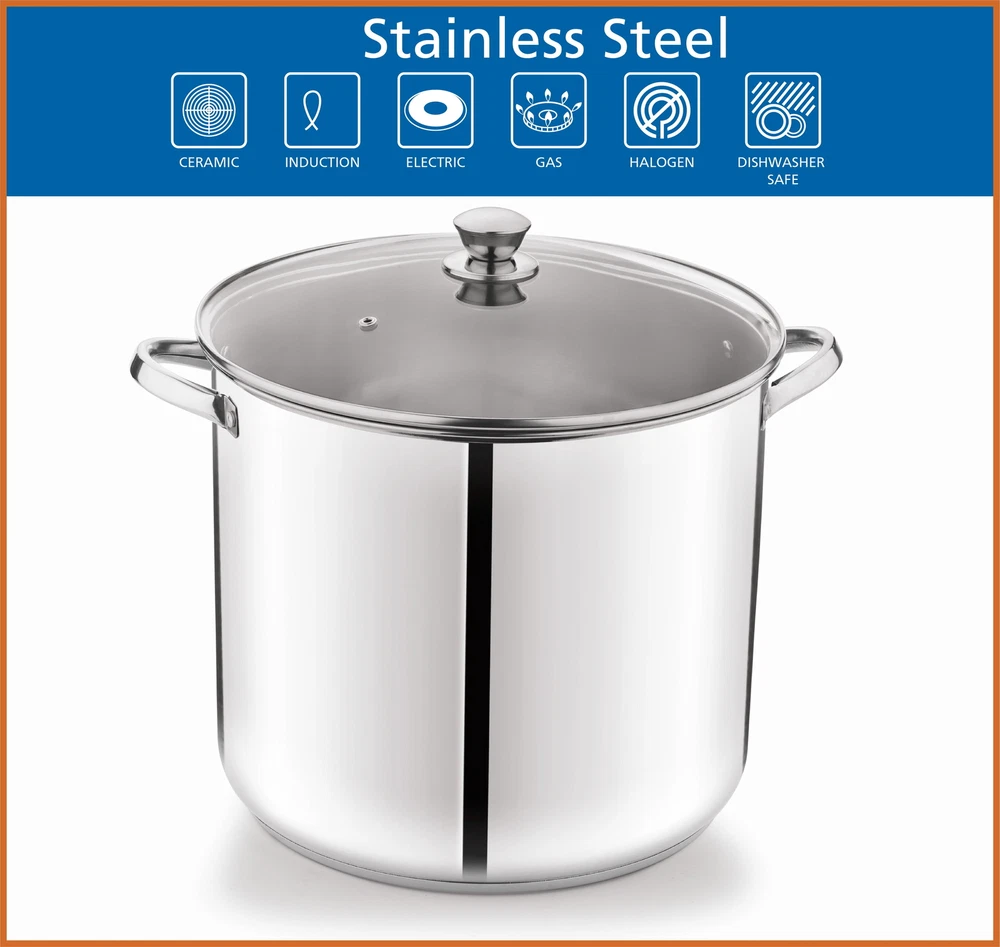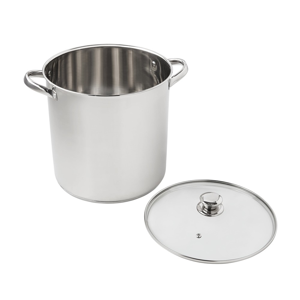 The Mainstays Stainless Steel 12-Quart Stock Pot with Glass Lid is a large and versatile cookware ideal for preparing sauces, soups, pastas, and more. It features a stainless steel construction , transparent glass lid , and stay-cool handles, making it perfect for cooking for large gatherings or smaller groups. The stock pot is induction safe , dishwasher safe , and has a durable design that coordinates with existing cookware. With dimensions of 10.04L x 10.04W x 9.64H and a weight of 4.04 lbs, it is easy to store and maneuver. This product is suitable for various cooking occasions, including family meals, backyard barbecues, and special events. The Mainstays Stainless Steel 12-Quart Stock Pot with Glass Lid is a large and versatile cookware ideal for preparing sauces, soups, pastas, and more. It features a stainless steel construction , transparent glass lid , and stay-cool handles, making it perfect for cooking for large gatherings or smaller groups. The stock pot is induction safe , dishwasher safe , and has a durable design that coordinates with existing cookware. With dimensions of 10.04L x 10.04W x 9.64H and a weight of 4.04 lbs, it is easy to store and maneuver. This product is suitable for various cooking occasions, including family meals, backyard barbecues, and special events. Prepare amazing sauces, soups, pastas, and more with the sizable Mainstays Stainless Steel 12-Quart Stock Pot with Glass Lid. This large stock pot measures 10.04”L x 10.04”W x 9.64”H. Perfect for cooking family meals for any occasion. Designed with stylish stainless steel and glass, it’s sure to coordinate with your existing cookware. This sturdy stock pot features stay-cool handles, transparent glass lid, durable stainless steel construction and is induction safe. Ideal for helping you feed your family and friends at get-togethers, backyard barbecues, celebrations, and other special events. The Mainstays Stainless Steel 12-Quart Stock Pot with Glass Lid is a must-have cookware item in any kitchen. Mainstays Stainless Steel 12-Quart Stock Pot with Glass Lid, Induction Compatible, Stainless Steel, Dishwasher Safe Features stay-cool handles for safe handling Dishwasher safe for easy cleanup Stylish design coordinates with existing cookware Ideal for cooking for large gatherings or smaller groups Recommended to use medium or lower heat settings to prevent damage On Jul 9, 2025 at 01:18:02 PDT, seller added the following information: