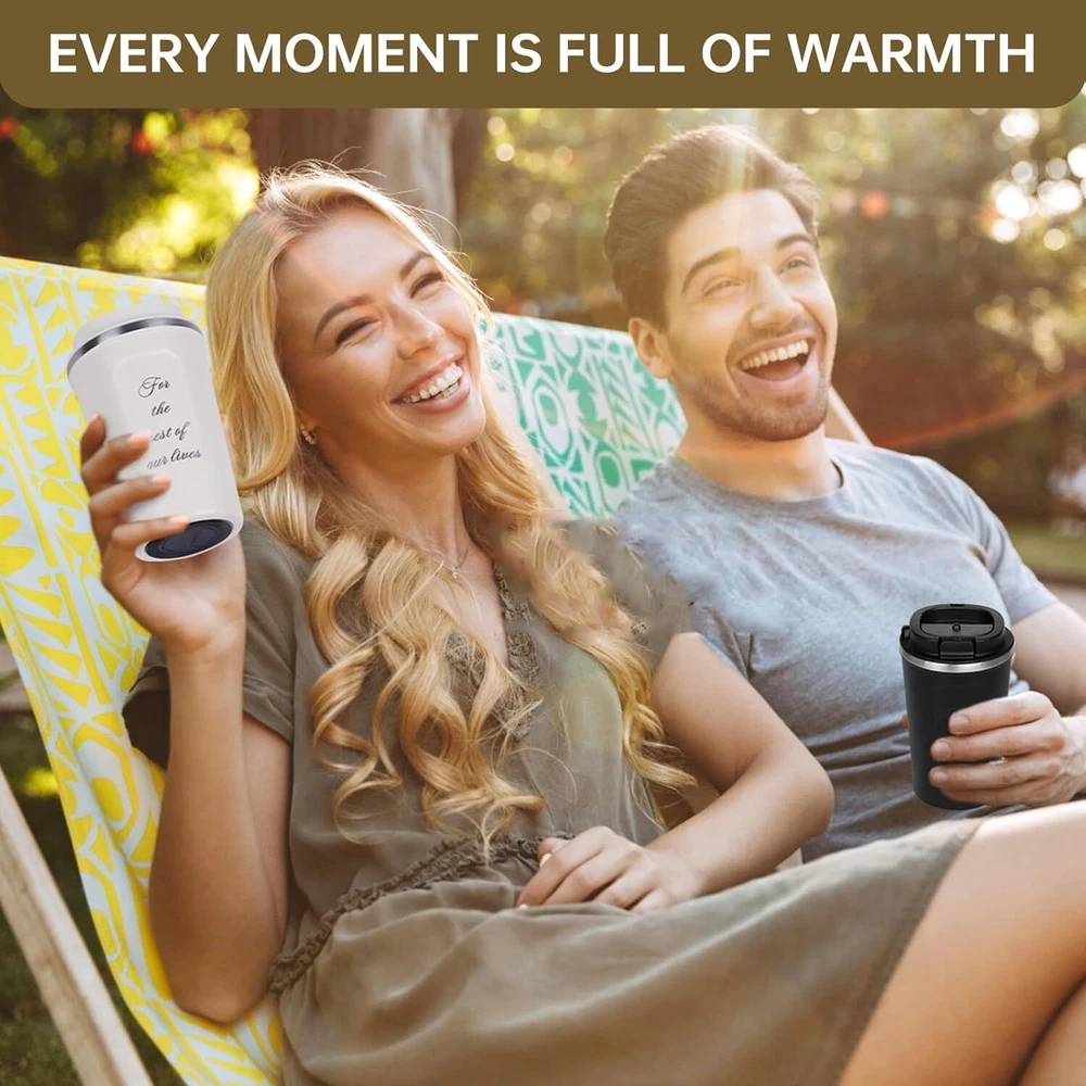 Eternal Love Mark: The coffee cup is engraved with "Let’s have coffee together, for the rest of our lives", every sip is a vow of love. Let this pair of coffee cups accompany you through every morning and evening, become a witness to your love, and like every cup of coffee, never cool down. Double Warmth, Double Enjoyment: Made of high-quality 304 stainless steel, it has a long-lasting heat preservation effect and is suitable for daily use. The rubber ring on the cup lid ensures the tightness of the cup and prevents it from leaking.Whether it is hot or cold drinks, it can maintain the ideal temperature for a long time. Personalized Design: Simple yet romantic design, suitable for any style of home or office environment, adding warmth and love to every day.In addition, the cup is equipped with a lanyard, which is convenient for carrying and hanging. Environmentally Friendly and Durable: Environmentally friendly stainless steel is used to ensure durability, drop resistance, corrosion resistance, and does not contain harmful substances, safe and healthy. Perfect Wedding Gift 2025: It is an ideal choice for newlyweds and lovers, implying every moment of the rest of your life together, accompanying each other through every memorable day.
