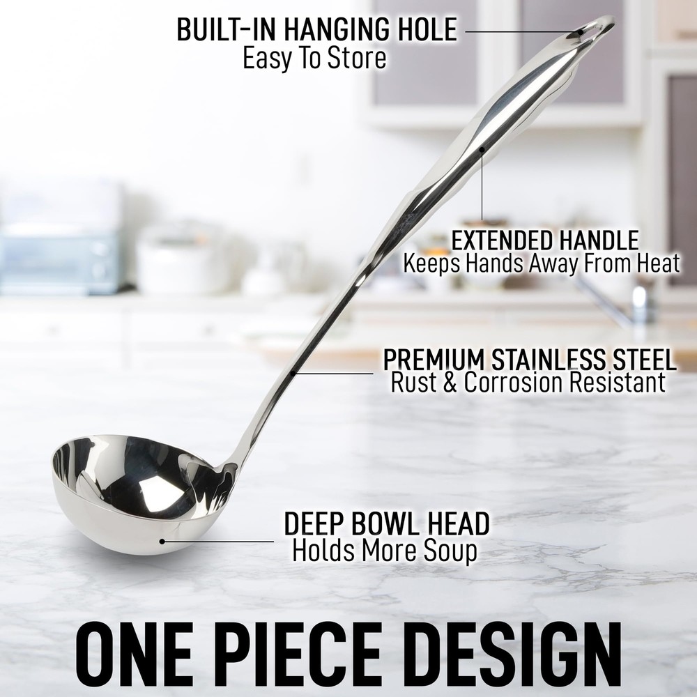 Stainless Steel 13-Inch Soup Ladle with Comfort Grip Long Handle and Ergonomic Design