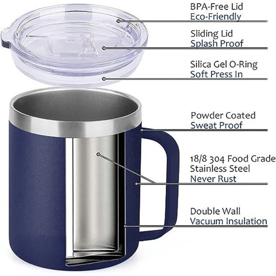 Stainless Steel Vacuum Insulated 14 oz Rambler Mug With Lid Capacity : 301-400ml This Stainless Steel Vacuum Insulated 14 oz Rambler Mug With Lid is the perfect addition to your kitchen collection. Keep your hot or cold beverages at the perfect temperature with its insulated feature. The mug is made of high-quality stainless steel material and comes with a lid to avoid spills. Ideal for thermal mug enthusiasts, this rambler mug is perfect for on-the-go use, camping, or outdoor activities. Its sleek design and durable material make it a great choice for daily use as well. Get your hands on this must-have mug today!