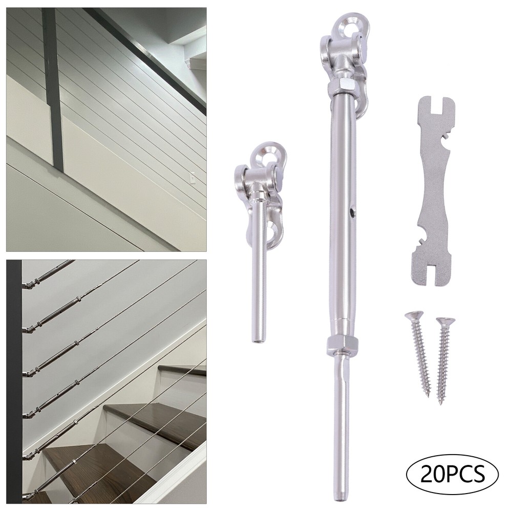 Details Spanner: This cable railing kit comes with a small spanner to make it easier for you to drill screws into the wood. This is convenient and labor-saving. Polishing Process: The surface of the product is polished to give it a glossy finish and to improve its corrosion resistance. Four Screws: There are four screws on each set of cable railing kits for you to install. You don't have to buy it separately. Application It is suitable for timber framed decks and stairs and for 1/8" stainless steel cables. It is ideal for indoor and outdoor applications, even in coastal areas. Package Included 20 Set* Cable Railing Kits Other Accessories for Installation 1/8" Cable Railing Kit Hardware Stainless Steel Cable Railing for Deck Stair USA 20 Pairs Cable Railing Kit 1/8" Hardware Stainless Steel 180° Adjustable Stairs Deck Description High-quality Cable Railing Connection Accessories Can Make the Cable Railing Fixed More Stable and Firm, Avoiding Potential Safety Hazards. Our High-strength Stainless Steel Cable Railing Kits Take the Worry out of Installing Cable Railings. the Adjustable Angle Design Allows You to Adjust to Different Installation Positions, Which Can Be Used for Most Indoor and Outdoor Options, Such As Timber Frames, Decks, and Stairs. Key Features Multi-angle Cable Railing Kit: the Angle-adjustable Cable Kits Are Ideal for Any Horizontal and Angle Railings As They Can Be Adjusted from 0-180°. so You Don't Have to Worry About the Angle of the Stairs. Robust and Durable: This Kit Is Made of Stainless Steel for High Strength, Corrosion, and Rust Resistance and Has Excellent Water Resistance for Long Service Life in Harsh Weather Conditions. 20 Sets: This Package Contains 20 Sets of Cable Railing Kits, Which Is Very Economical and Will Be Enough for Your Daily Use. Stylish and Beautiful: the Product in Silver Is Stylish and Attractive. It Is a Great Choice for Minimalist Style. High Compatibility: These Cable Railing Kits Are Customized for 1/8inch Steel Cables and Can Be Easily Connected with Adapted Steel Cables. Re-usable: Most Cable Railing Hardware Cannot Be Repaired After Crimping with Wire Rope If It Is Measured Incorrectly or Needs to Be Adjusted. This Product Is Reusable and Can Be Re-measured or Re-made by Unscrewing the Set Screw and Adjusting the Cable Length at Any Time. Easy to Install: the Cable Kit Does Not Require Any Pre-drilling and Can Be Installed by Simply Tightening the Screws. Guaranteed Customer Service: Your Satisfaction Is Our Top Priority, We Will Make Things Right for You. If You Are Unsatisfied with Our Products, You Can Contact Us and We Will Ensure You Have a Pleasant Shopping Experience in Our Store. Details Spanner: This Cable Railing Kit Comes with a Small Spanner to Make It Easier for You to Drill Screws into the Wood. This Is Convenient and Labor-saving. Polishing Process: the Surface of the Product Is Polished to Give It a Glossy Finish and to Improve Its Corrosion Resistance. Four Screws: There Are Four Screws on Each Set of Cable Railing Kits for You to Install. You Don't Have to Buy It Separately. Application It Is Suitable for Timber Framed Decks and Stairs and for 1/8" Stainless Steel Cables. It Is Ideal for Indoor and Outdoor Applications, Even in Coastal Areas. Specification Material: 316 Stainless Steel Color: Silver Surface Finish: Polished Angle Adjustment: 180° Number of Pieces: 20 Sets Applicable Size: 1/8'' Net Weight: 2.46kg/5.42lbs Package Size:21*15*10cm/8.27*5.91*3.94inch Each Set Size: 17.5*4.8*4.8cm/6.9*1.9*1.9inch Package Included 20 Set* Cable Railing Kits Other Accessories for Installation Notes Please Allow the Slight Color Difference Caused by the Shooting Light and 1-3 Cm Error Due to Manual Measurement, and Make Sure You Do Not Mind Before Ordering. Payment Delivery details Terms of sales About us Contact us Payment We accept ebay payment 。 Fees such as import duties, taxes are not included in the item price or shipping costs. These charges are the buyer's responsibility. Delivery details Shipping: 2-9 working days to: USA Terms of sales We maintain high standards of excellence and strive for hundred percent customer satisfaction. Feedback is very important to us. We hope that you contact us immediately before you give neutral or negative feedback, so that we can address your concerns. It is impossible to address issues if we do not know about them! About us Your satis faction is our ultimate goal. We work hard to earn your trust and future business. Our certified technicians have tested each item before shipping. The unit comes with 1 year limited warranty on all manufacturing defects. a) If you receive a defective item, you may return it or ask for a discount. Please contact us within 14 days after you receive the package. b) What you returned must be intact and in its original packaging as re? u. Customer is responsible for shipping costs of the returned item. c) We will cover the cost of shipping back t with the shipping rate indicated in the registration page. We will send you a new unit or refund the full payment you paid. Thank you. Contact us Business Hour Business Hour: Monday To Friday: 8:30 AM to 5:00 PM (Beijing China time) Due to time zones, our reply to your questions may not be immediately. But within above working time, we will reply your email within 24 hours. If it's non-workdays, please kindly be patient and wait till Monday. Please contact us with ebay message. Please feel free to contact us if you have any questions. Monday To Friday: 8:30 AM to 5:00 PM (Beijing China time) Due to time zones, our reply to your questions may not be immediately. But within above working time, we will reply your email within 24 hours. If it's non-workdays, please kindly be patient and wait till Monday. Please contact us with ebay message. Please feel free to contact us if you have any questions. Feature/ US Local Warehouse, Fast Shipping! 2.Feature Fast shipping Control Style N/A modified item no EAN Does Not Ap