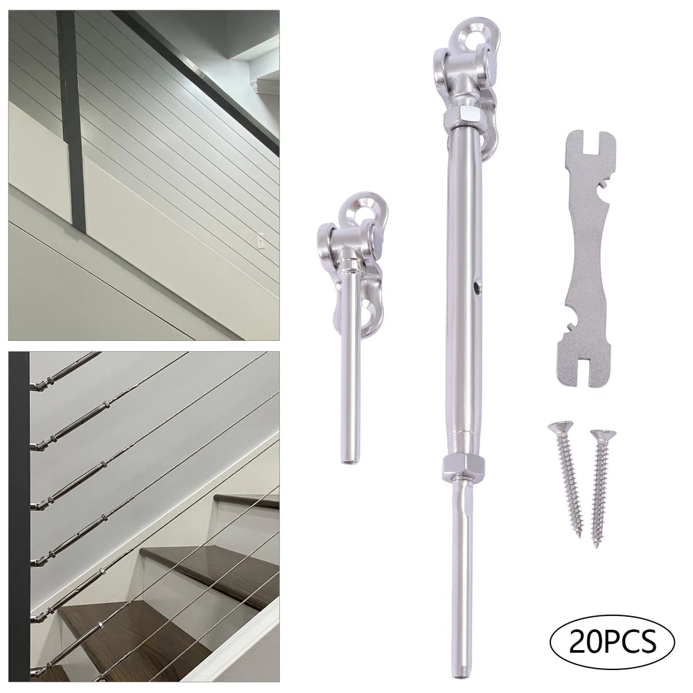 Finish: Polished Mounting Angle: Any Angle Angle Adjustment: 180° MPN: N/A Item Width: N/A Package Size: 21*15*10cm/8.27*5.91*3.94inch Item Height: N/A StartPrice: 70.92624 Material: 316 stainless steel Brand: Unbranded Color: Silver Type: Cable Railing Kits gtin13: Does not apply UPC: Does not apply Number in Pack: 20 Number of Pieces: 20 sets Model: N/A Style: Modern
