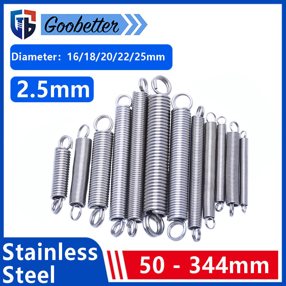 Product description Specifications: 【Features】- Springs occupy an important position in various markets. Stainless steel spiral compression spring, waterproof, rust-proof, durable. 【Application】- Widely used in shipbuilding, computer, electronics, automobile, chemical industry, aerospace, railway, wind power, thermal power, construction machinery, mining machinery, construction machinery, elevators and other fields. Wire diameter:2.5mm Diameter:16 - 25mm Length:50 - 340mm Material:304 Stainless Steel