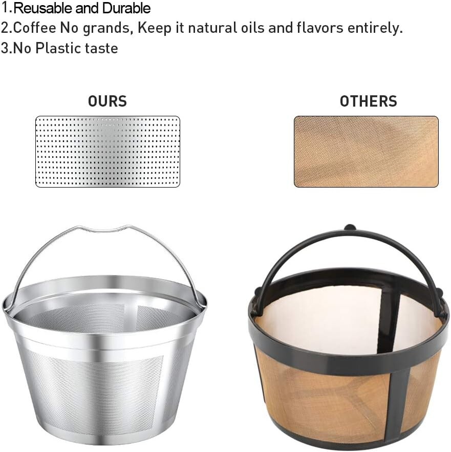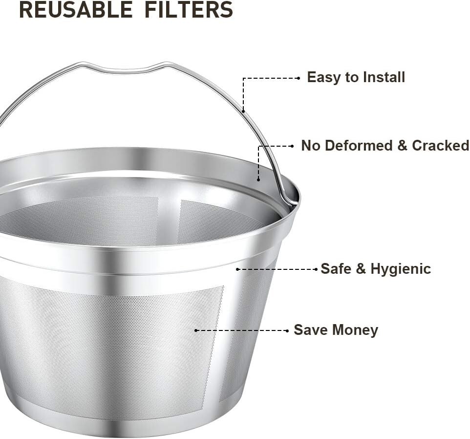 Reusable 4-5cup basket Replacement Coffee Filters Stainless Steel Permanent cof Color: Mr.coffee maker Material: Stainless Steel Shape Basket Number of Pieces: 1 Unit Count: 1 Count Reusable Mr.Coffee 4 or.5 or 6cups basket filter can replace the paper filters.Reduce wasting and avoid spending much more money on the coffee filter. Never deformed and cracked. Permanent coffee filter was made of food grade stainless steel and with flat bottom. Safe and hygienic.No Rusting and Corrosion. Reusable Mr. Coffee basket filters is easy to use and cleaning under running water. Mr.Coffee maker and brewer 4 cup reusable filter is fit for Mr.Coffee maker and brewer.Black & Decker Gevi AmazonBasics Capresso Basket-Style Coffee Maker Filters