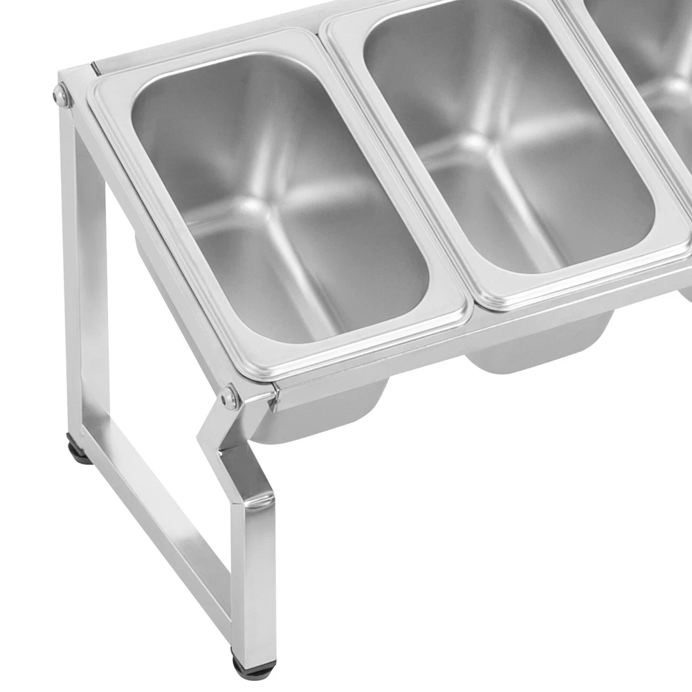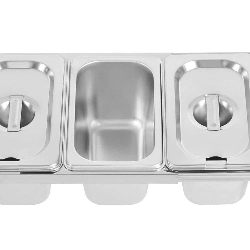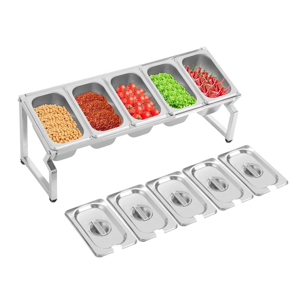 Stainless Spice Rack, Seasoning Organizer Sauce Ingredients Fruits Holder 5 Pans Welcome to haohaofacai~ Description This spice rack makes it easy to see which spices you need, so you don't have to rummage around and lock down what you need at a glance. It is made of high-quality stainless steel, which is easy to clean, durable and long-lasting. It blends in nicely and adds a splash of color to your kitchen, making cooking fun. Choose it to make the complicated spice storage well organized so that the cooking process is more convenient. Key Features Sturdy and Durable: The product is made of high-quality stainless steel and rubber, using polishing technology, with high strength, wear resistance, and long service life. Thoughtful Design: The reserved spoon notch on the lid allows the spoons to be stored directly inside. The overall forward-slanting design makes it easy for you to view and access the spices, providing you with a friendly and tidy kitchen experience. Large Capacity: Five 0.21 Gal containers allow you to store a variety of seasonings, side dishes, etc. at once without having to change and add them frequently. High Stability: The sturdy construction and four adjustable feet allow it to adapt to uneven table tops, maintain its overall stability, and allow the product to weigh 44.09 lbs. Adjustable Length: The length of this product extends to 3.44 ft, which allows you to easily adjust the number and size of containers to be placed to meet your specific usage needs. Space-saving: Its small footprint (22*7*7.8 inches) and retractable length can maximize your kitchen space while keeping your cooking essentials within reach. Effortless Clean: Thanks to its smooth surface, simple structure, and removable design, you can easily remove dust from the surface of the product with a towel. You can also wash them in the dishwasher to free up your hands. Nice Gift: This practical and beautiful product is a great holiday or housewarming gift for family, friends, and lovers so that they can enjoy a more convenient life. Details Four Non-slip Feet: They are made of rubber and can prevent the product from slipping, and avoid scratching the tabletop. Recessed Handle: It is convenient for you to easily put in your fingers to lift the lid. Application It is suitable for private kitchens, restaurants, vendors, tables, buffets, parties, shops, etc. It is suitable for storing sugar, salt, sauces, vinegar, peppers, spices, nuts, sultanas, dried fruits, teas, coffee, sugar, oils, hummus, salsa dips, salsas, side dishes, vinaigrettes and gravies, herbs, and other condiments. It can be used to store small snacks such as cheese, olives, salads, fruits, and appetizers. Specifications Style: Modern Shape: Rectangular Color: Silver Material: Stainless Steel, Rubber Surface Treatment: Polishing Mount Type: Tabletop Assembly Required: Yes Is the Dishwasher Safe?: Yes Number of Pans: 5 Each Pan Capacity: 0.8L/ 0.21 Gal Max. Load Capacity: 20kg/ 44.09 lbs Max. Adjustable Length: 1.05m/ 3.44 ft Product Size: 55.88*17.78*19.81cm/ 22*7*7.8 in Package Size: 40*35*16cm/ 15.75*13.78*6.30 in Gross Weight: 2.4kg/ 5.29 lbs Net Weight: 1.8kg/ 3.97 lbs Package Included 1* Spice Rack 5* Pans 5* Lids Notes 1.Please double-check that the dimensions of this product are suitable before purchasing. 2.Please note that seasoning is not included in this product. Please allow the slight color difference caused by the shooting light and 1-3cm error due to manual measurement, and make sure you do not mind before you order. Payment Delivery details Terms of sales About us Contact us Payment We accept ebay payment 。 Fees such as import duties, taxes are not included in the item price or shipping costs. These charges are the buyer's responsibility. Delivery details Shipping: 2-9 working days to: USA Terms of sales We maintain high standards of excellence and strive for hundred percent customer satisfaction. Feedback is very important to us. We hope that you contact us immediately before you give neutral or negative feedback, so that we can address your concerns. It is impossible to address issues if we do not know about them! About us Your satis faction is our ultimate goal. We work hard to earn your trust and future business. Our certified technicians have tested each item before shipping. The unit comes with 1 year limited warranty on all manufacturing defects. a) If you receive a defective item, you may return it or ask for a discount. Please contact us within 14 days after you receive the package. b) What you returned must be intact and in its original packaging as re? u. Customer is responsible for shipping costs of the returned item. c) We will cover the cost of shipping back t with the shipping rate indicated in the registration page. We will send you a new unit or refund the full payment you paid. Thank you. Contact us Business Hour Business Hour: Monday To Friday: 8:30 AM to 5:00 PM (Beijing China time) Due to time zones, our reply to your questions may not be immediately. But within above working time, we will reply your email within 24 hours. If it's non-workdays, please kindly be patient and wait till Monday. Please contact us with ebay message. Please feel free to contact us if you have any questions. Monday To Friday: 8:30 AM to 5:00 PM (Beijing China time) Due to time zones, our reply to your questions may not be immediately. But within above working time, we will reply your email within 24 hours. If it's non-workdays, please kindly be patient and wait till Monday. Please contact us with ebay message. Please feel free to contact us if you have any questions. Fe'a'tu're's ★Stable performance and high quality★ Item Height 7.8in Item Length 22in Item Width 7 in Type Spice Rack Material Stainless Steel, Rubber Color Silver Number of Pans 5 Each Pan Capacity 0.8L/ 0.21 Gal Max. Load Capacity 20kg/ 44.09 lbs Product Size 55.88*17.78*19.81cm/ 22*7*7.8 in Brand TBVECHI MPN Does not apply