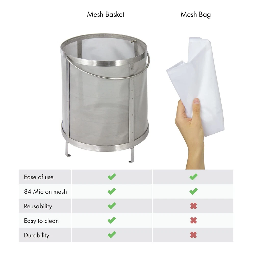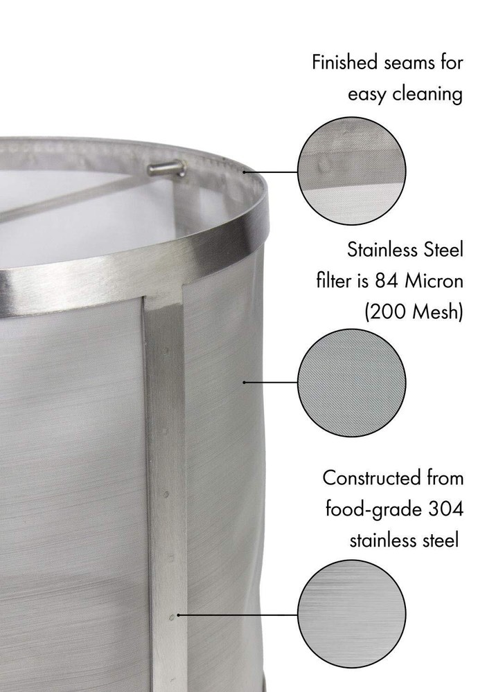 Thanks to XMB-8 Cold brew Coffee filter basket, it is now easier than ever to start a new cold-brew Coffee business or add a new beverage option for guests and customers. Perfect for use with Stainless Steel brew kettles or your own stock pot, This brew basket is the easiest way to make a 6 gallon batch of Coffee. This durable 84 micron, 200 mesh Stainless Steel Coffee filter has been constructed from 304 grade Stainless Steel with clean seams and spot-welding for easy cleaning and sanitation, ensuring that your cold-brew Coffee will be as healthy as it is delicious. The convenient handle makes it easy to take the filter out of the pot When you're done brewing, and it can be easily removed to make clean-up a snap. Four sturdy Stainless Steel feet create space at the bottom of the pot for drainage. 's XMB-8 Cold-Brew Coffee Filter is the easiest way to brew a large 6 gallon batch of coffee Durable, food-grade 304 stainless steel construction is resistant to oxidation and corrosion Fine 84 micron, 200 mesh design offers the same level of filtration as a standard coffee filter Features a removable handle and clean seams that make cleaning and sanitation fast and simple Four sturdy stainless steel feet create space at the bottom of the pot for drainage