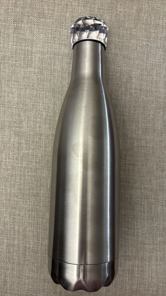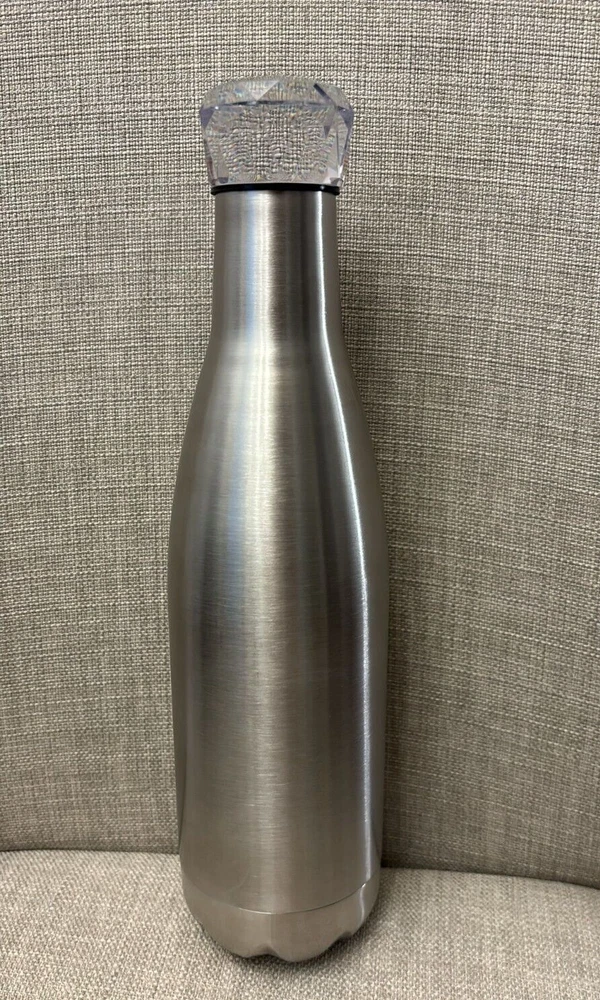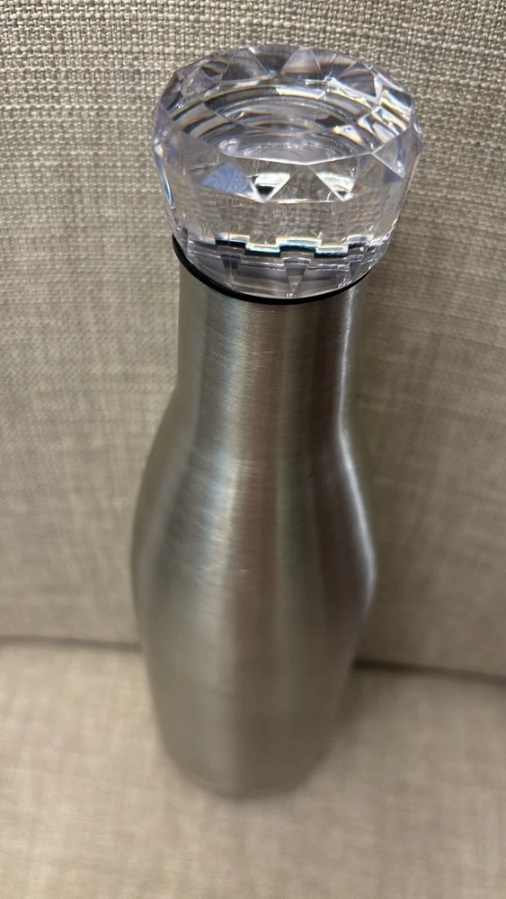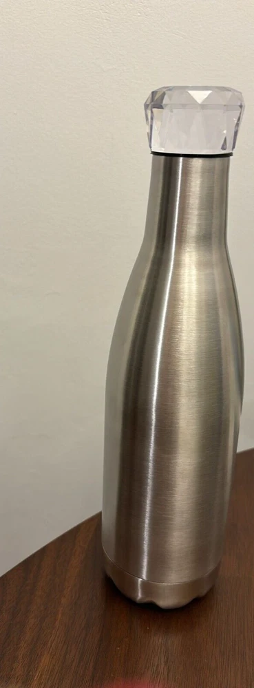 This premium stainless steel vacuum insulated bottle is a must-have for anyone who appreciates high-quality style . 17 oz capacity, it is perfect for keeping your hot or cold beverages at the ideal temperature for hours. The bottle features a diamond style lid that adds an extra touch of elegance. It comes in a silver color that will complement any kitchen decor. This premium stainless steel vacuum insulated bottle is perfect for outdoor activities, travel, or daily use and for gifts: birthdays gifts, Christmas gifts or other ocassions. Rare,unique and elegant style! 2 in stock. Price is for 1.