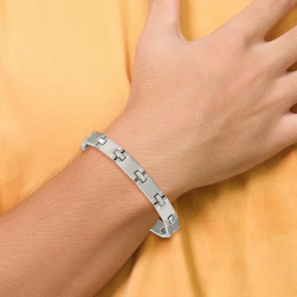 Finish:Polished & Brushed|Length of Item:8.5 in|Chain Length:8.25 in|Chain Type:Link, Other|Chain Width:7 mm|Clasp /Connector:Fold Over Catch|Material: Primary:Stainless Steel|Width of Item:7 mm|Packaging:Gift Boxed|Product Type:Jewelry|Jewelry Type:Bracelets|Sold By Unit:Each|Bracelet Type:Men's|Gender:Men's|Material: Primary - Color:White|Items per Pack:1 All weights and measurements are approximate and may vary slightly from the listed information. Welcome to diamond_6720 Payments We accept all Ebay approved payment. Please sent the payment to us within 8 days after the auction has ended, or you will have unpaid case auto open by eBay. Shipping Policy We will ship all items within 1 business days of purchase during the work week (M-F) excluding holidays. If you order on Friday, your order will be shipped the following business day. Tracking will be provided when it becomes available. We will only ship to a PayPal Verified Address. Please make sure your address is current and correct. If the information does not match, your order may be canceled. Buyers are responsible for all customs, duties and taxes for your respective countries. Delivery times for International Shipping will vary. California Buyers Pay 9.0% Tax on all orders. case auto open by eBay. Return Policy & Exchange Returns or Exchange are accepted. Buyer must contact us within 30 days after the item is received. Item must be returned in unworn and resalable condition. We will only issue a refund for the purchase price, excluding any shipping fees. If we are at fault, we will provide a full refund. Buyer is responsible for all return shipping costs. BUYERS FEEDBACK If you have any concerns regarding your purchase, please contact us via eBay Message, we assure you that a satisfactory resolution will be reached. Your feedback is very important to us Do remember to give us 5 star rating(*****) if you are satisfied with our product & service .