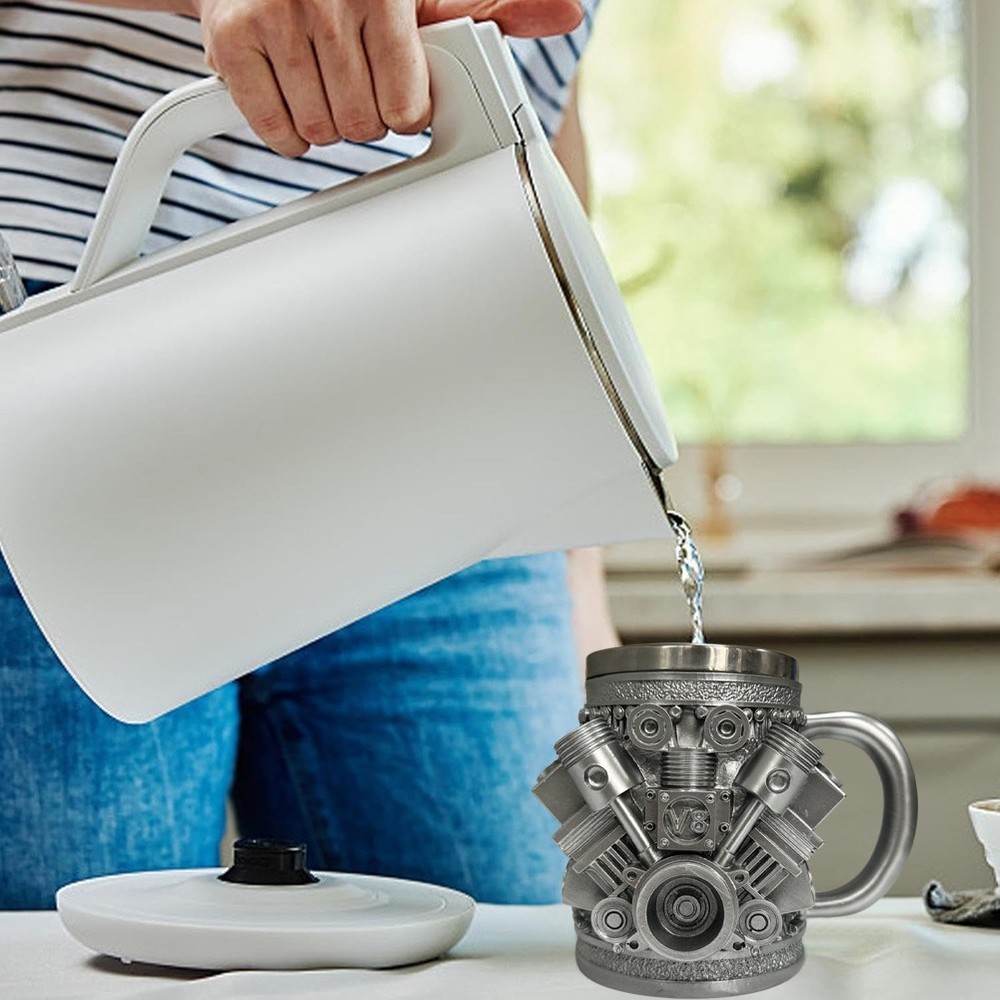 Stainless Steel Mug Engine Stainless Steel Mug Car Engine Ceramic Coffee1877 Attractive Design for Car Lovers: This mug features a 3D car engine design that captures the essence of V8 engines, making it a perfect collectible for those who admire automotive power and precision. Its intricate patterns are sure to draw attention and admiration. and Long-Lasting: Constructed from high-quality stainless steel, this coffee mug is designed to withstand daily use without breaking or deforming. Ideal for enjoying your favorite beverages in the garage or while working on your car. Advanced Temperature Retention: Equipped with double-wall vacuum insulation, this mug keeps your coffee, tea, or hot chocolate at the perfect temperature for hours. Whether you're or on a trip, your drink stays warm, enhancing your drinking experience. Portable and Convenient: and compact, this stylish stainless steel mug is easy to carry and store, making it a practical choice for everyday use. Its sleek design fits comfortably in car cup holders and small spaces, ensuring you can enjoy your brew anywhere. for Special Occasions: Impress car enthusiasts and coffee lovers alike with this creatively designed mug. Its detailed craftsmanship and stylish appearance an excellent gift for birthdays, holidays, or as a special treat for yourself or a loved one. Color: As shown Material: stainless steel Package Contents: 1 x stainless steel cup