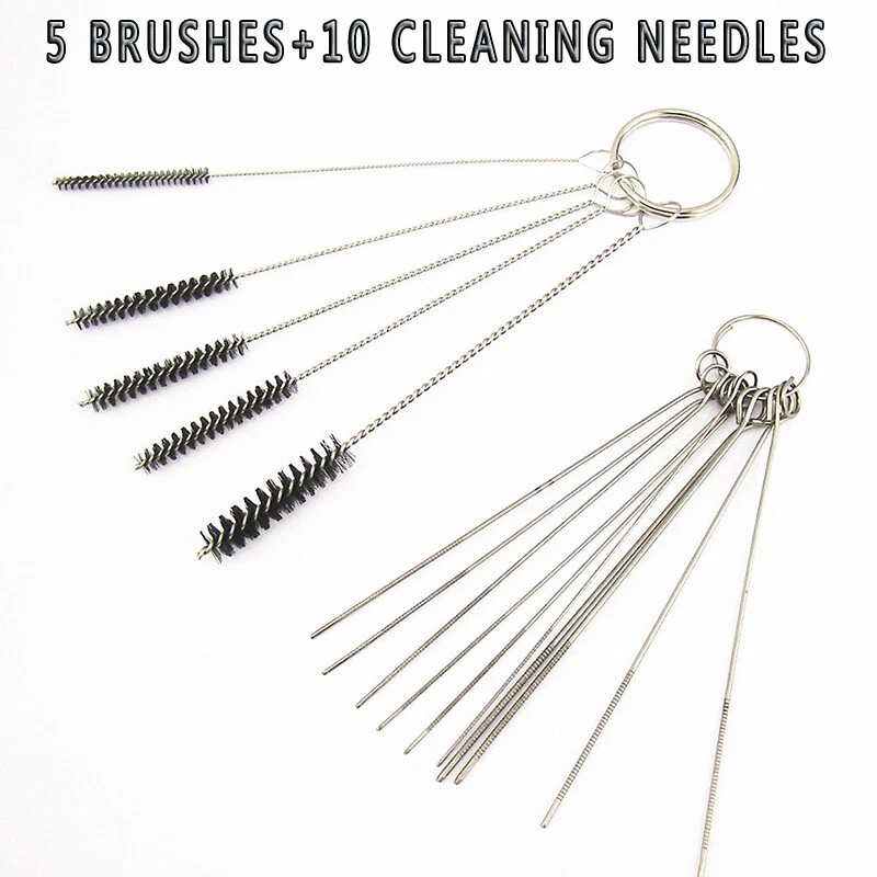 Stainless Steel Carburetor Cleaning Kit with 10 Needles and 5 Brushes