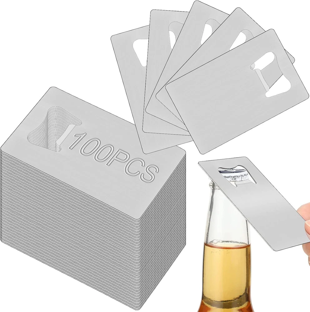 About this item Sturdy and Reliable: our card bottle opener is made of quality stainless steel, which is strong and serviceable, not easy to rust or corrode, not easy to deform, and can be applied for a long time Delicate Card Design: our bottle opener is designed in a credit card shape, you can carry it with you, the edge is thickened to prevent deformation; It is very convenient to put directly in your purse or shirt pocket; Allows you to open bottles with ease, the suitable bottle opener for beer lovers Suitable Size: each metal beer bottle opener is about 3.3 inches long, 2.2 inches wide, and weighs about 40 grams, the right size and design are convenient for you to hold; You can easily open the bottle, appropriate weight will not be bulky and can be carried at any time Where to Use: our stainless steel credit card openers can be applied in many occasions, such as family gatherings, bars, company celebrations, weddings, camping, rave parties and more Nice Gift: this stainless steel card opener has a credit card shape, suitable for you to open beer and soda bottles, nice gift for family or friends on Father's Day, Christmas, Birthday, Halloween, Thanksgiving and more; It also makes a nice groomsmen gift