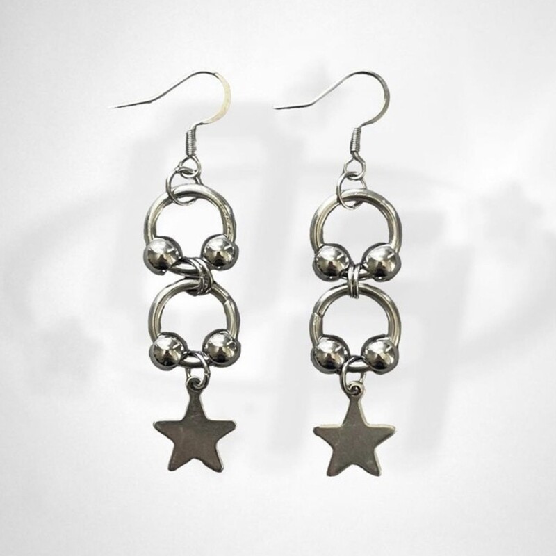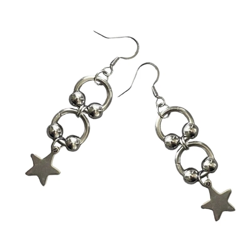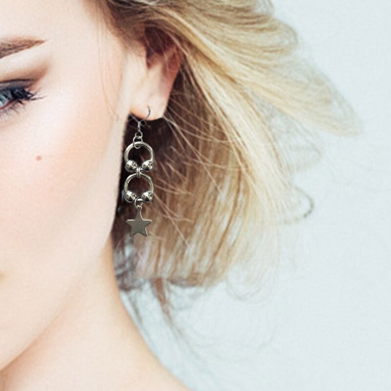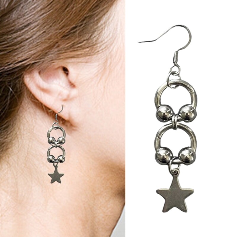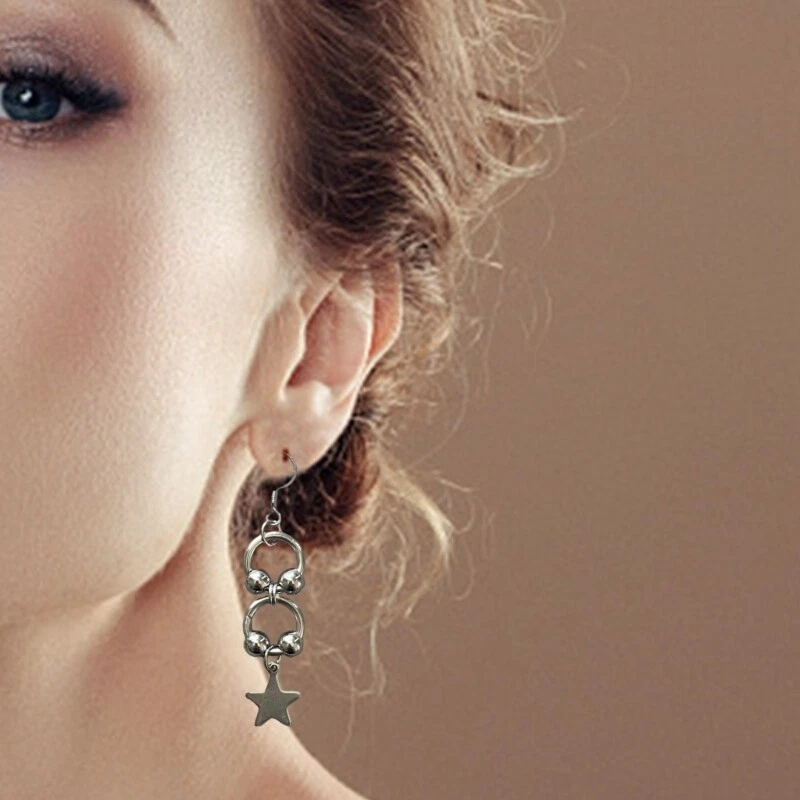 Stainless Steel Circle Star Pendant Punk Drop Earrings for Women