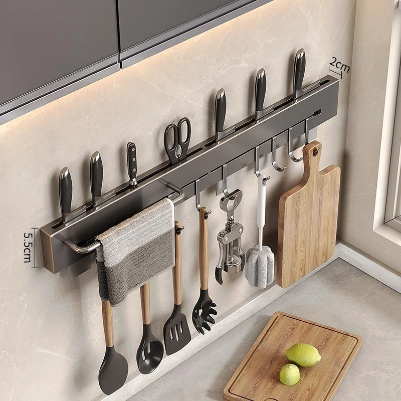 Q:What's material for the hook organizer? It is made of high-quality stainless steel material,waterproof,rust-proof,scratch-resistant. Q:Which wall are suitable for the cleanup hanging? 1.Suitable for ceramic tile wall,marble wall,metal wall,frosted glass wall,waterproof paste wall 2.Not suitable for painted walls,cement wall,plaster wall,wallpaper wall Q:How long can it be used? It can be used for at least 5 years Q:What's the size of this item? 30cm,40cm,50cm Q: How to mount the spoon holder? Screw punching Q:What are the advantages of the product? 1.Quality Control:Quality is not for advertising! It is a mirror to reflect both of main functions and using lifetime in each item. The products will be tested before leaving the factory.We believe the Quality, and deliver the same. 2.Competitive Price: We have our own factory,consumers can reach products without through middlemen. 3.Logistics advantages:Tight supply dates, continues supply 365 days a year Packing list: 1* kitchen rack +1package*punch accessories Matters need attention: Due to different methods of measuring tools,there may be some errors in product dimensions.Please refer to the actual product. Spoon Holder,Cleanup Hanging,Knife Stand,Kitchen Storage Supplies,Hook Organizer,Kitchen Novel Kitchen Accessories