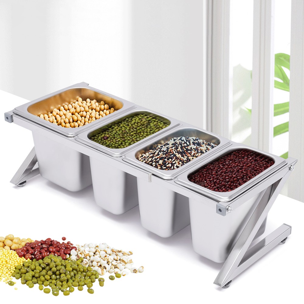 Commercial Seasoning Spice Rack Organizer Shelf for Restaurant Stainless Steel Welcom to alwaytty03 Description A neat, clean, and stylish kitchen need a user-friendly spice rack to store and organize your abundant spices for you. This sturdy and stable shelf not only effectively uses the vertical space of the countertop, but also easily avoids the embarrassment of tipping over the spice pan. This countertop inclined spice rack will give you a neat and comfortable kitchen to enjoy your cooking! Key Features High-quality Material: The shelf is made of high-quality 304 stainless steel, and the pans are made of 201 stainless steel, both of which are strong, wear-resistant, rust-resistant, and corrosion-resistant to ensure long service life. Wide Application: The stable performance of stainless steel is resistant to acids and alkalis, making it suitable for a variety of seasonings and safe for use in dishwashers, ovens, and freezers. Large Capacity: With a total of one 1/6 pans (2.32 Qt) and three 1/9 pans (1.69 Qt), this countertop spice rack set can be used not only for everyday household needs but also in restaurants and canteens. The large capacity also eliminates the need for frequent refilling. Telescoping Shelf: The support telescoping tube is adjustable in length (14.17-23.6in), allowing you to choose the number of pans to hold depending on your needs, as well as slide the pans to the left or right for easy access as you wish. Space Saving: It makes good use of the vertical space of the countertop to organize your kitchen spices or sauces in an orderly manner, keeping your kitchen neat and tidy High Load-bearing Capacity: Compared with directly placing the food pans on the tabletop, which tends to be knocked over or overturned, this frame adopts durable stainless steel and provides firm support. It ensures a good load-bearing capacity and can stably accommodate multiple filled pans. Easy to Install: Its simple structure and complete screw accessories allow you to easily complete the installation. All you have to do is attach and tighten the shelf with the screws provided, saving you time and effort. Easy to Clean: The removable pans and the electrolytic processed stainless steel, make cleaning a breeze. You can clean it directly with water without taking too much time. Easy to Store: The detachable shelf and stackable pans will easily fit in any wall cabinet without taking up too much space. Customer Service: We aim to provide quality products and services. If you have any problems, please feel free to contact us. We will reply and solve the problem for you as soon as possible. Details Practical Lid: Each pan comes with a lid to protect the spices from dust and moisture, maintaining the hygiene and quality of the spices. A recess on the lid ensures that the spoon is securely placed without affecting the seal of the lid. In addition, the top of the lid is designed with a handle for your convenience. Adjustable Foot Pad: The adjustable non-slip feet at the bottom adapt well to uneven countertops, making placement stable without tilting or slipping. It also protects the countertop from scratching. Rounded Corners: The rounded corners and smooth polished edges without burrs protect your hands from scratches and scrapes, making them more secure to use. Practical Ladles : Each pan is equipped with a ladle to avoid mixing spices. The ladle also makes it easier to control the number of spices precisely for a delicious meal. Application It is widely used in the home or commercial kitchens, canteens, pantries, cafes, beverage stores, and restaurants to store condiments, spices, sauces, jams, sweet soups, coffee beans, sugar, nuts, grains, etc. Specification Shelf Material: 304 Stainless Steel Pan Material: 201 Stainless Steel Color: Silver Installation Type: Freestanding Process: Polished, Electrolysis Special Feature: Expandable Spice Rack Number of Shelves: 1 Food Pan Quantity: 3 x 1/9 Pans + 1 x 1/6 Pan 1/9 Pan Dimensions: 17.5*11*15cm/6.88*4.33*5.9in 1/9 Pan Capacity: 1.6L/1.69Qt 1/6 Pan Dimensions: 17.5*16.5*15cm/6.88*6.49*5.9in 1/6 Pan Capacity: 2.2L/2.32Qt Shelf Dimension: 50*18*20cm/19.7*7.1*7.9in Shelf Length Range: 36-60cm/14.17-23.6in Packing Size: 43*32*22cm/17*12.6*8.7in Gross Weight: 3.5kg/7.7lbs Net Weight: 3.1kg/6.8lbs Package Included 2 x Side Support Frames 2* Telescopic Tubes 3 x 1/9 Pans 1 x 1/6 Pan 4 x Ladles 4 x Lids 4 x Adjustable Foot Pads All Accessories Required for Installation Notes Please note that the shelf can only be adjusted to a maximum of 60cm/23.6in. Please allow the slight color difference caused by the shooting light and 1-3cm error due to manual measurement, and make sure you do not mind before you order. Payment Delivery details Terms of sales About us Contact us Payment We accept ebay payment 。 Fees such as import duties, taxes are not included in the item price or shipping costs. These charges are the buyer's responsibility. Delivery details Shipping: 2-9 working days to: USA Terms of sales We maintain high standards of excellence and strive for hundred percent customer satisfaction. Feedback is very important to us. We hope that you contact us immediately before you give neutral or negative feedback, so that we can address your concerns. It is impossible to address issues if we do not know about them! About us Your satis faction is our ultimate goal. We work hard to earn your trust and future business. Our certified technicians have tested each item before shipping. The unit comes with 1 year limited warranty on all manufacturing defects. a) If you receive a defective item, you may return it or ask for a discount. Please contact us within 14 days after you receive the package. b) What you returned must be intact and in its original packaging as re? u. Customer is responsible for shipping costs of the returned item. c) We will cover the cost of shipping back t with the shipping rate indicated in the registration page. We will send you a new unit or r