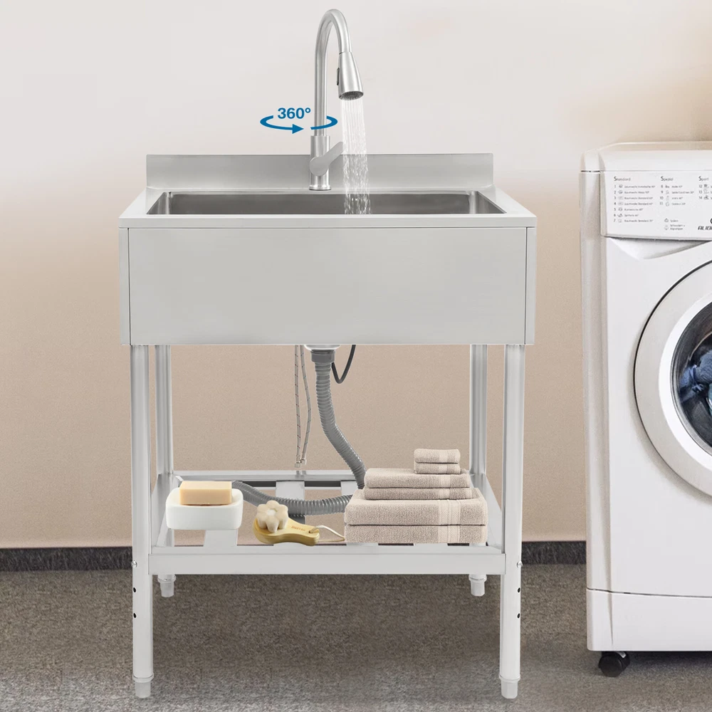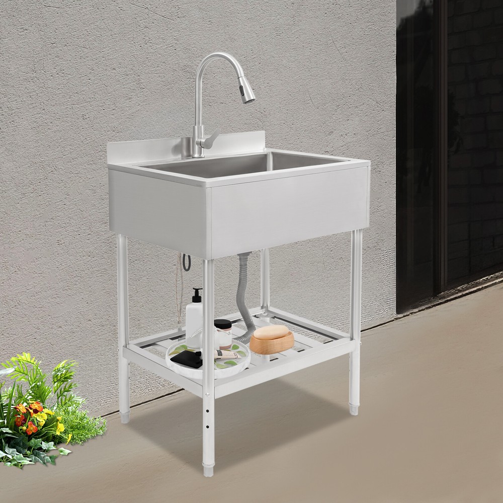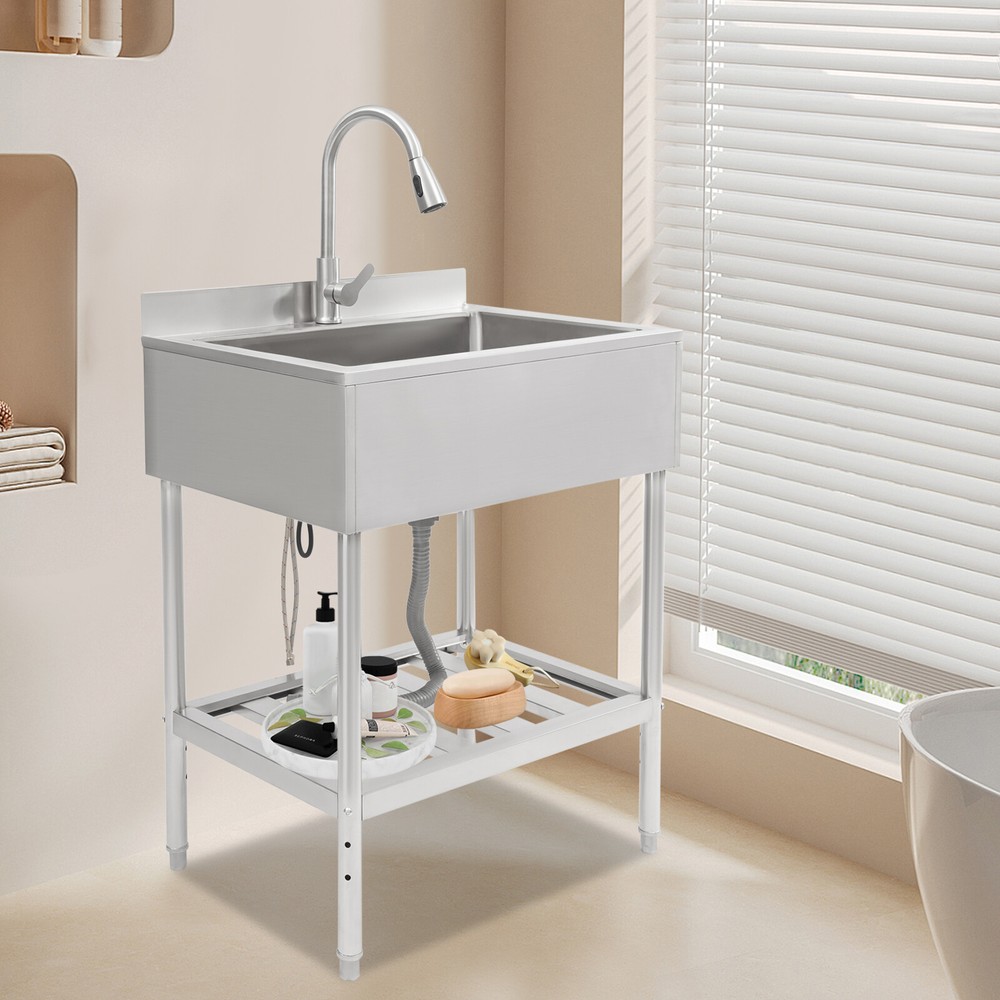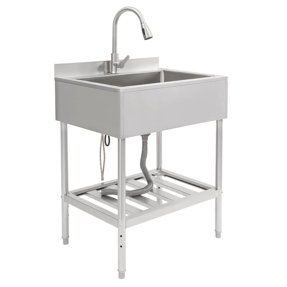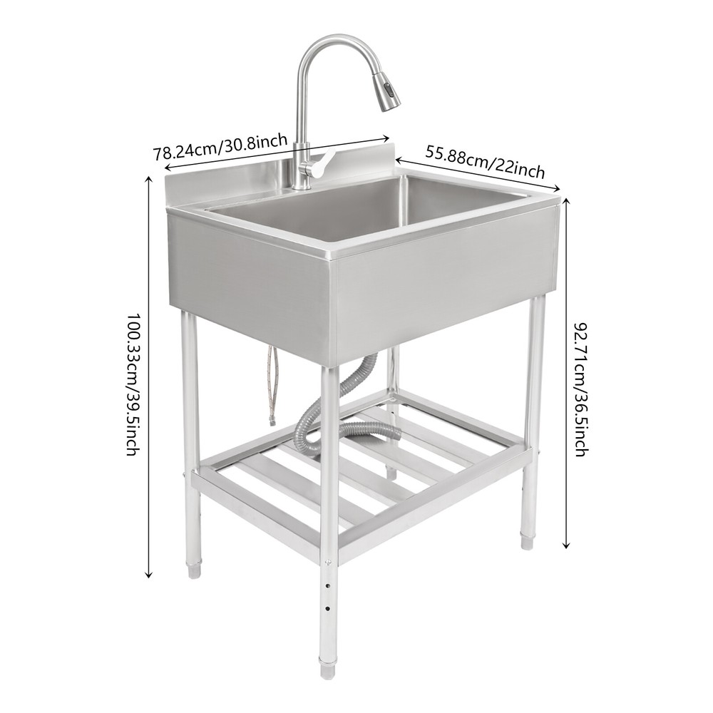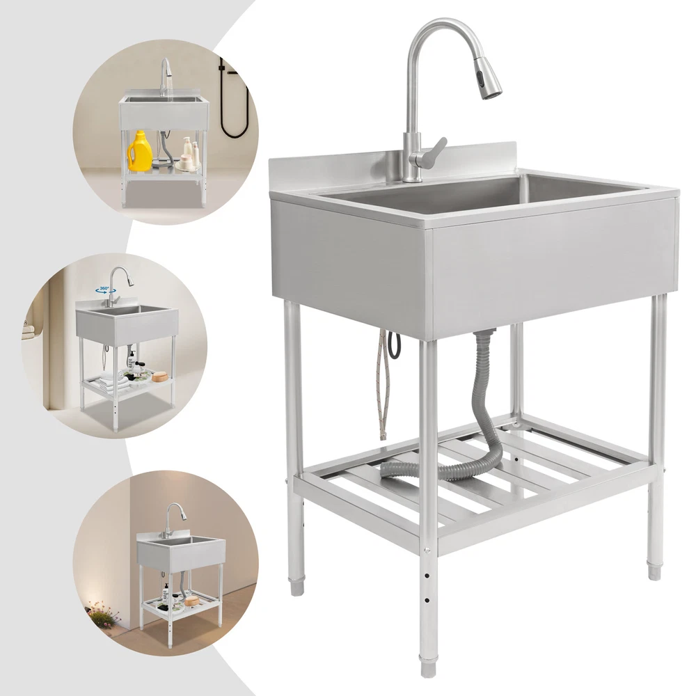 $ 138.52Commercial Single Bowl Stainless Steel Hand Wash Sink Basin Freestanding &Faucet