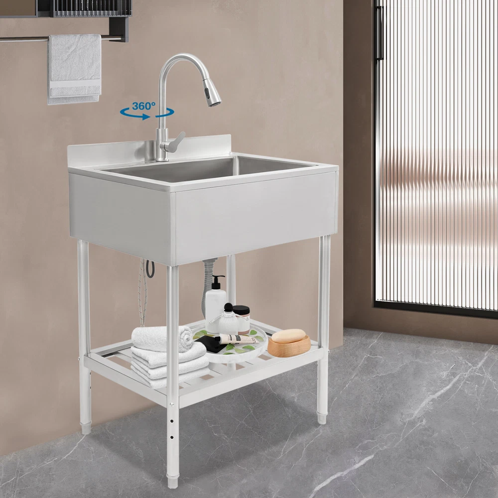 Application This product is suitable for both commercial and residential use and can be used in the kitchen, garden, garage, backyard, restaurant, laundry room, school, hospital, outdoor and other places. Specification Material: 304 Stainless Steel Color: Silver Process: Wire Drawing Style: Modern Assembly Required: Yes Mounting Type: Free Standing Shape: Rectangle Product Size: 78.23*55.88*100.33cm/30.8*22*39.5in Shelf Max. Load Capacity: 50kg/110.23lbs Package Size: 83*61*44cm/32.68*24.02*17.32in Package Included 1* Free Standing Stainless Steel Sink Other Accessories for Assembly Free Standing Commercial Sink Prep Table w/ Faucet Stainless Steel Kitchen Sink Free Standing Commercial Sink Prep Table W/ Faucet Stainless Steel Kitchen Sink Key Features Made to Last: High-quality 304 Stainless Steel and Exquisite Wire Drawing Process Make This Product Sturdy, Impact-resistant , High-temperature Resistant , and Not Easy to Rust and Deform, Ensuring a Long Service Life. Convenient Washing: the 360° Swivel Gooseneck Faucet with Pull-out Design Provides You with a Full Range of Cleaning Angles for a Comfortable and Easy Cleaning Experience. in Addition, It Supports Dual Use of Hot and Cold Water, and You Can Easily Switch Between Hot and Cold Water to Meet Your Different Needs. Large Sink Space: the Enlarged Sink Makes It Possible to Accommodate More Pots and Pans While Still Avoiding Splashing. Thoughtful Design: the Removable Filter in the Basin Prevents Food and Debris from Clogging the Drain, and Also Makes It Easy for You to Clean It in Time. Also, It Comes with a Lid to Reduce Odors and Small Flying Insects Coming from the Pipes. Strong Load-bearing Capacity: the Thickened Material and Rectangular Structure Make the Product More Stable and the Lower Shelf Can Bear a Weight of 110.23 Lbs , Allowing You to Place a Variety of Heavy Objects for Your Convenience. Easy Assembly: a Simple Stru cture and Complete Accessories Help You Finish the Installation Quickly and Use It in a Short Time. Effortless Cleaning: the Smooth Surface, Round Corners, and Simple Structure Allow You to Clean It Easily Without Leaving Dead Corners of Dirt Accumulation. Ideal Gift: with Good Performance and a Modern Appearance, It Can Be Used As an Ideal Housewarming Gift for Parents, Friends, and Lovers so That They Can Also Enjoy a More Convenient Life. Good Customer Service: We Aim to Provide Quality Products and Services. If You Have Problems, Please Feel Free to Contact Us. We Will Reply and Solve the Problem for You As Soon As Possible. Details Switch: You Can Control the Water Output Through the Switch on the Faucet, Making It Convenient for You to Clean Items. Baffle: It Can Prevent Splashing Water from Contaminating the Wall. Application This Product Is Suitable for Both Commercial and Residential Use and Can Be Used in the Kitchen, Garden, Garage, Backyard, Restaurant, Laundry Room, School, Hospital, Outdoor and Other Places. Specification Material: 304 Stainless Steel Color: Silver Process: Wire Drawing Style: Modern Assembly Required: Yes Mounting Type: Free Standing Shape: Rectangle Product Size: 78.23*55.88*100.33cm/ 30.8*22*39.5in Shelf Max. Load Capacity: 50kg/110.23lbs Package Size: 83*61*44cm/32.68*24.02*17.32in Gross Weight: 14kg/30.86lbs Net Weight: 12.8kg/28.22lbs Package Included 1* Free Standing Stainless Steel Sink Other Accessories for Assembly Notes Please Check the Size Carefully Before Ordering. Please Do Not Clean It with Hard Tools like Steel Wire Balls (Not Included) for a Longer Service Life. Please Allow the Slight Color Difference Caused by the Shooting Light and 1-3cm Error Due to Manual Measurement, and Make Sure You Do Not Mind Before Ordering. Payment Delivery details Terms of sales About us Contact us Payment We accept ebay payment 。 Fees such as import duties, taxes are not included in the item price or shipping costs. These charges are the buyer's responsibility. Delivery details Shipping: 2-9 working days to: USA Terms of sales We maintain high standards of excellence and strive for hundred percent customer satisfaction. Feedback is very important to us. We hope that you contact us immediately before you give neutral or negative feedback, so that we can address your concerns. It is impossible to address issues if we do not know about them! About us Your satis faction is our ultimate goal. We work hard to earn your trust and future business. Our certified technicians have tested each item before shipping. The unit comes with 1 year limited warranty on all manufacturing defects. a) If you receive a defective item, you may return it or ask for a discount. Please contact us within 14 days after you receive the package. b) What you returned must be intact and in its original packaging as re? u. Customer is responsible for shipping costs of the returned item. c) We will cover the cost of shipping back t with the shipping rate indicated in the registration page. We will send you a new unit or refund the full payment you paid. Thank you. Contact us Business Hour Business Hour: Monday To Friday: 8:30 AM to 5:00 PM (Beijing China time) Due to time zones, our reply to your questions may not be immediately. But within above working time, we will reply your email within 24 hours. If it's non-workdays, please kindly be patient and wait till Monday. Please contact us with ebay message. Please feel free to contact us if you have any questions. Monday To Friday: 8:30 AM to 5:00 PM (Beijing China time) Due to time zones, our reply to your questions may not be immediately. But within above working time, we will reply your email within 24 hours. If it's non-workdays, please kindly be patient and wait till Monday. Please contact us with ebay message. Please feel free to contact us if you have any questions.