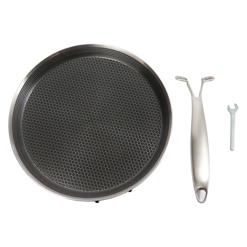 Description Food is the source of life, and delicious dishes require better cookware. This stainless steel crepe pan is made from selected materials, and its honeycomb texture design not only provides excellent scratch resistance but also ensures its durability. It is also compatible with various types of stoves, meeting your diverse cooking needs. Key Features High-class Materials: This product is made from superior 304 stainless steel, 430 stainless steel, and aluminum, which is heat-resistant, corrosion-resistant, scratch-resistant, warp-resistant, sturdy, and durable, bringing you a healthy cooking and diet environment. Fast & Even Heating: The 11-inch pan uses a multi-layer design: 304 stainless steel, aluminum, and 430 stainless steel, a thick wall, and a flat bottom, to ensure fast and even heating, reduce heat loss, and provide a better insulation effect so that you will have a pleasing culinary journey. Considerate Design: The pan adopts a 180° flat bottom, making it easy to spread the crepe batter and ensuring the crepe batter is evenly distributed on the center of the pan without flowing around. The 1-inch raised edge design prevents the food or liquid in the pan from easily spilling when shaken or flipped. Compact and Lightweight: The product weighs only 2.82 lbs , is compact in size, and can be easily operated with one hand, showcasing the style of a chef. Modern Minimalist: The exterior design is simple and elegant, with smooth lines that can match various kitchen decoration styles, enhancing the overall beauty. Ideal Gift: This product is not only elegant and stylish but also highly practical, making it a great choice for housewarming gifts for friends, family, and colleagues. Buy with Confidence: We stand behind all our guests and look forward to assisting you with your purchase. It is our pleasure to answer your confusion and questions. The end of the story between us is not "we sell and you buy". Details Extended Handle: The 8.6-inch extended 201 stainless steel handle is comfortable and heat-resistant , allowing you to enjoy cooking without worrying about burns. Hanging Hole: The handle is designed with a hanging hole so that you can hang this pan for space-saving storage when not in use while allowing for easy access. Application It is universal for various types of stoves, including gas stoves, glass stoves, electric ceramic stoves, electric stoves, and halogen stoves. It is ideal for making pancakes, frying eggs, frying chicken wings, making pizza, crepes, bacon, etc. Specifications Style: Modern Color: Silver, Black Material: 304 Stainless Steel, Aluminum, 430 Stainless Steel, 201 Stainless Steel Process: Single-sided Honeycomb Process + Non-stick Coating Is Dishwasher Safe: Yes Assembly Required: Yes Pan Thickness: 2.3mm/0.1in Pan Depth: 2.5cm/1in Pan Diameter: 28cm/11in Handle Length: 21.8cm/8.6in Package Size: 29.5*29.5*4.5cm/11.61*11.61*1.77in Gross Weight: 1.35kg/2.98 lbs Net Weight: 1.28kg/2.82 lbs Package Included 1* Stainless Steel Crepe Pan 1* Wrench Notes Please check the size carefully before ordering. Please note that when using a gas stove, it is recommended that the flame size does not exceed the bottom of the pan; medium to low heat is sufficient. Although it is scratch-resistant and dishwasher-safe, we still recommend you wash it by hand to extend its service life. Please hang or store the cookware in a dry place. Please allow the slight color difference caused by the shooting light and 1-3cm error due to manual measurement, and make sure you do not mind before you order. Payment Delivery details Terms of sales About us Contact us Payment We accept ebay payment 。 Fees such as import duties, taxes are not included in the item price or shipping costs. These charges are the buyer's responsibility. Delivery details Shipping: 2-9 working days to: USA Terms of sales We maintain high standards of excellence and strive for hundred percent customer satisfaction. Feedback is very important to us. We hope that you contact us immediately before you give neutral or negative feedback, so that we can address your concerns. It is impossible to address issues if we do not know about them! About us Your satis faction is our ultimate goal. We work hard to earn your trust and future business. Our certified technicians have tested each item before shipping. The unit comes with 1 year limited warranty on all manufacturing defects. a) If you receive a defective item, you may return it or ask for a discount. Please contact us within 14 days after you receive the package. b) What you returned must be intact and in its original packaging as re? u. Customer is responsible for shipping costs of the returned item. c) We will cover the cost of shipping back t with the shipping rate indicated in the registration page. We will send you a new unit or refund the full payment you paid. Thank you. Contact us Business Hour Business Hour: Monday To Friday: 8:30 AM to 5:00 PM (Beijing China time) Due to time zones, our reply to your questions may not be immediately. But within above working time, we will reply your email within 24 hours. If it's non-workdays, please kindly be patient and wait till Monday. Please contact us with ebay message. Please feel free to contact us if you have any questions. Monday To Friday: 8:30 AM to 5:00 PM (Beijing China time) Due to time zones, our reply to your questions may not be immediately. But within above working time, we will reply your email within 24 hours. If it's non-workdays, please kindly be patient and wait till Monday. Please contact us with ebay message. Please feel free to contact us if you have any questions. Material 304 Stainless Steel, Aluminum Process Single-sided Honeycomb Process + Non-stick Coating Pan Thickness 2.3mm/0.1in Stove Type Compatibility Gas Brand Unbranded