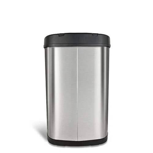 Hands-free lid opens with a simple wave of the hand Advanced infrared technology preserves battery life Non-skid base protects your flooring from scuff marks Removable ring liner keeps trash bag securely in place Built-in manual mode keeps the lid open longer for bigger cleanups Commercial-grade fingerprint resistant stainless steel Large opening and capacity to handle all your household trash needs with ease Hands-free lid opens with a simple wave of the hand, advanced infrared technology preserves battery life Large opening and capacity to handle all your household trash needs with ease, built-in manual mode keeps the lid open longer for bigger cleanups Non-skid base protects your flooring from scuff marks Removable ring liner keeps trash bag securely in place Commercial-grade fingerprint resistant stainless steel