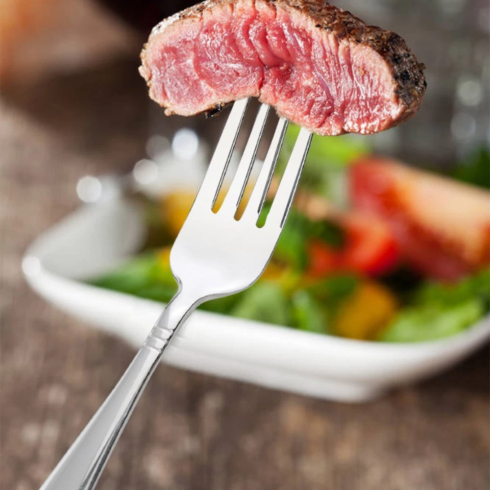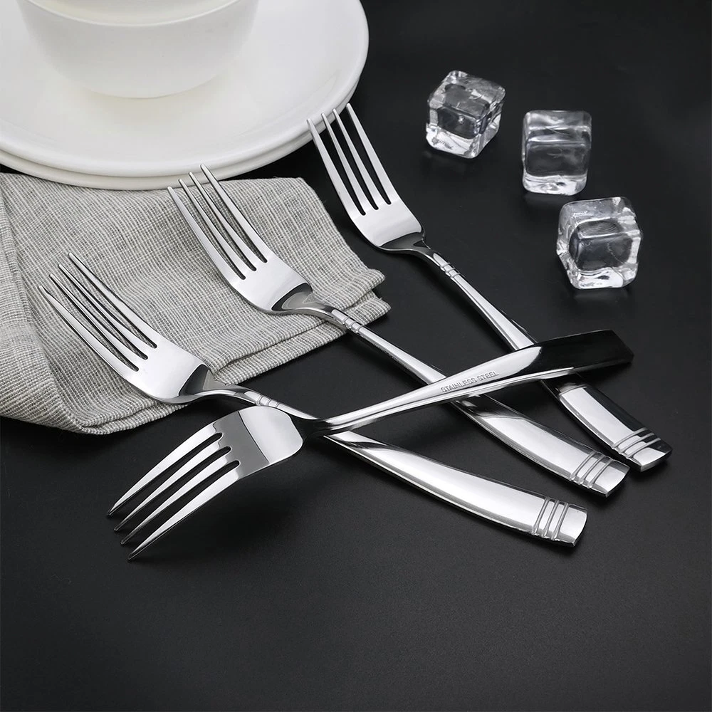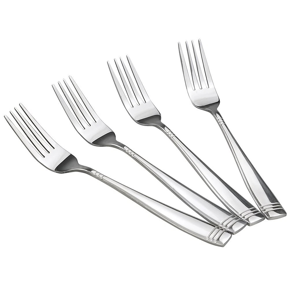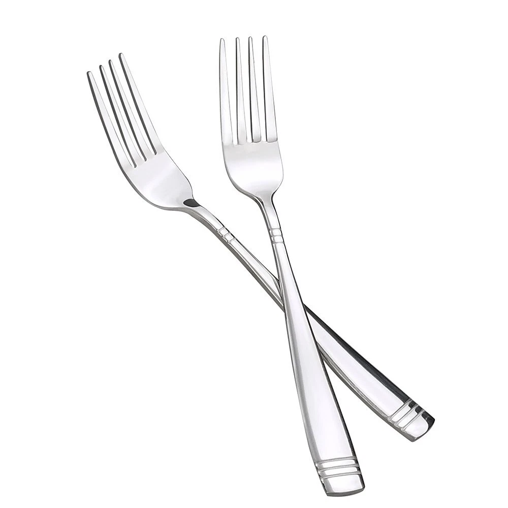 12-piece stainless steel dinner fork. Total length: 8" 12-piece stainless steel dinner fork Total length: 8" Stylish handle design Mirror polish Simple and elegant surface design that makes this flatware suitable for official or everyday meals
