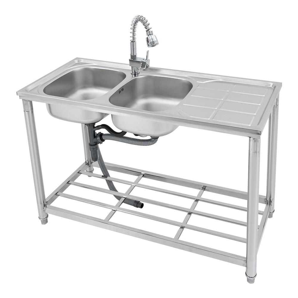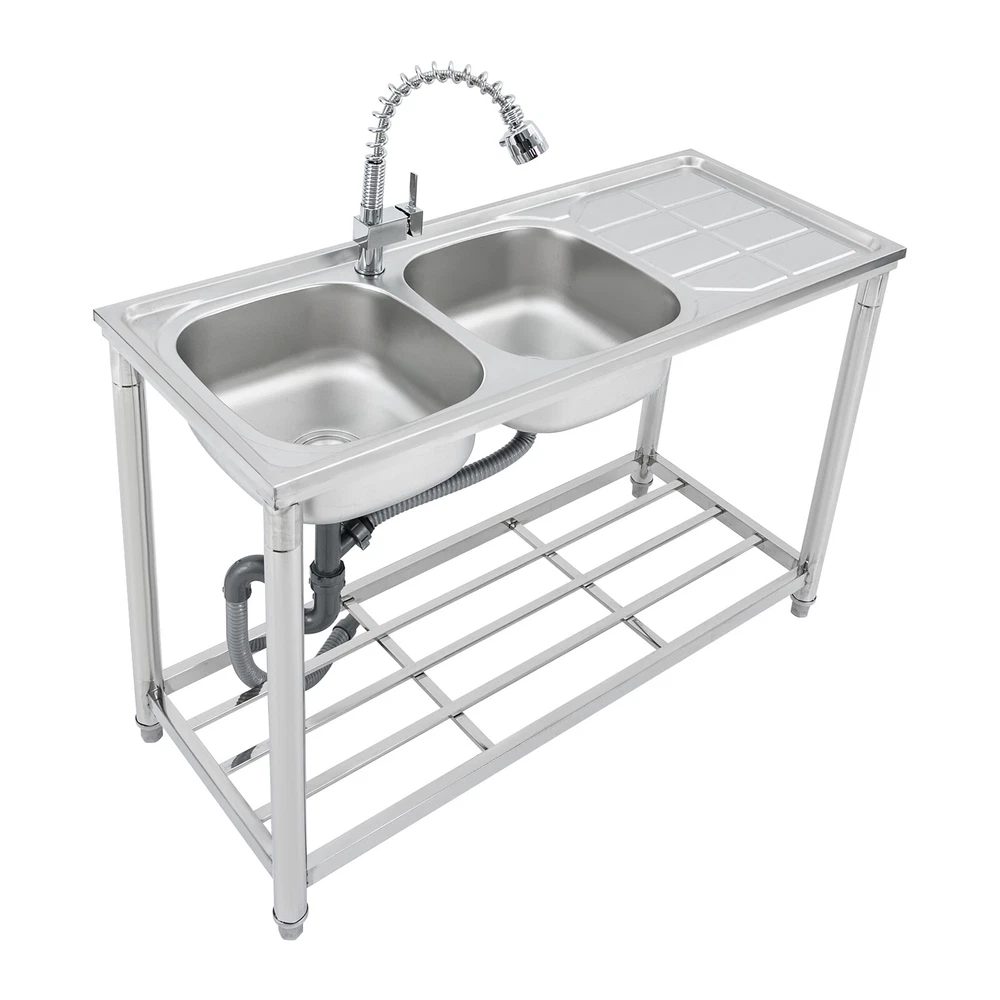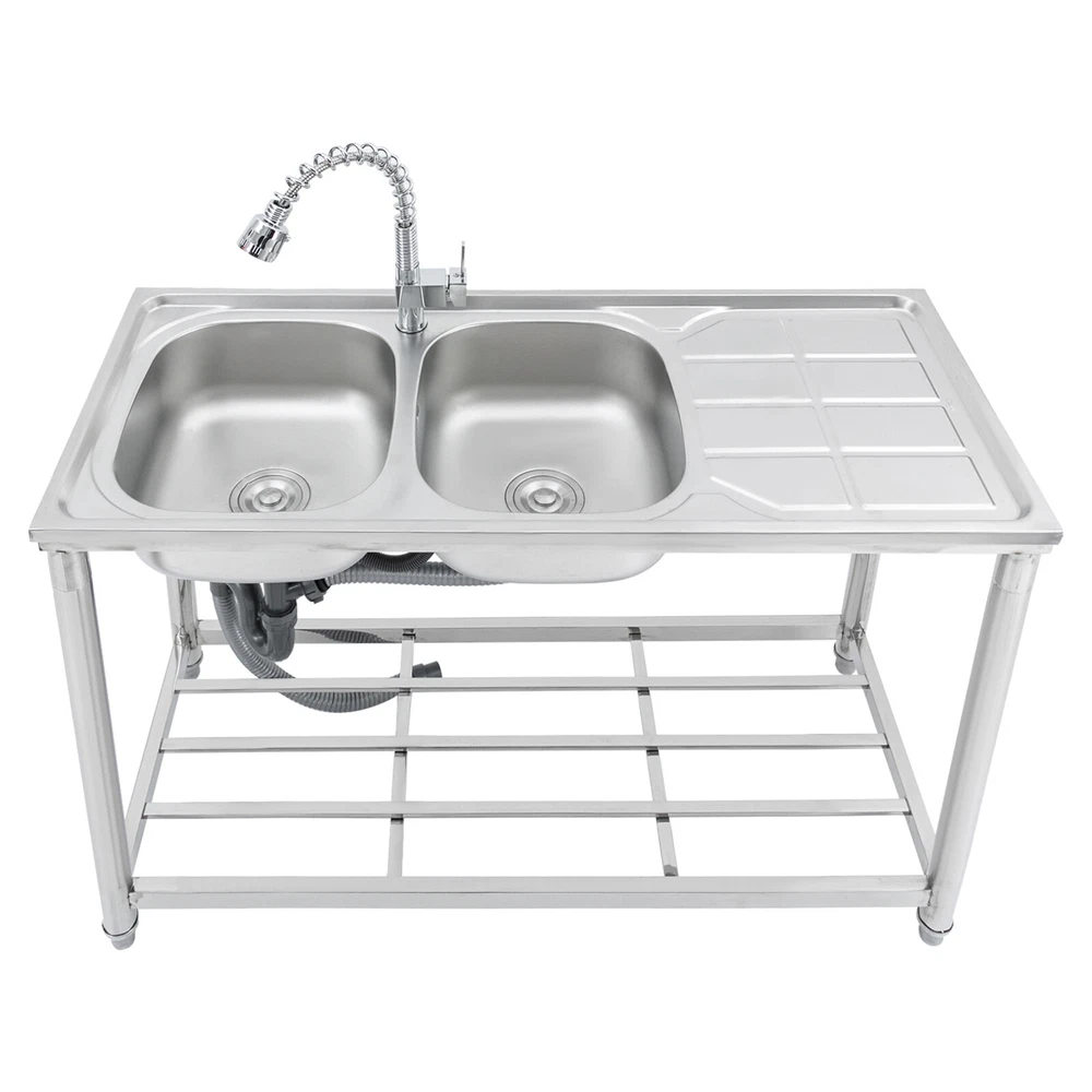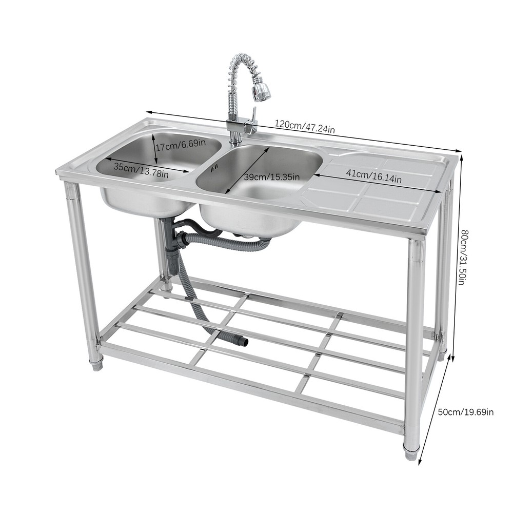 Application The Product Is Suitable for Use in Kitchens, Bars, Restaurants, Dessert Stores, Cafeterias, Garages, and Other Commercial Establishments to Wash and Clean Food, Fruits and Vegetables, and More. Specifications Color: Silver Material: 201 Stainless Steel Process: Electroplated Number of Bowls: 2 Mount Type: Free Standing Assembly Required: Yes Pull-out Faucet Length: 50cm/19.69in Load Bearing Capacity: 100kg/220.46lbs Faucet Interface: 1/2in Inlet Water Pipe: 80cm/31.5in Product Size: 120*50*80cm/47.24*19.69*31.5in Each Bowl Size: 39*35*17cm/15.35*13.78*6.69in Countertop Length: 41cm/16.14in Packaging Size: 125*55*28cm/49.21*21.65*11in Gross Weight: 10kg/22lbs Package Included 1*Stainless Steel Sink 1*Pull-out Faucet Other Needed Accessories Welcome to our store 👉promotion_sales Description Use This Shiny and Durable Stainless Steel Sink to Elevate Your Kitchen Grade and Improve Your Washing Experience and Kitchen Working Efficiency. It Comes with a Pull-out Faucet, Efficient Drainage, a Large Countertop, and a Sturdy Bottom Shelf to Provide You with a Convenient and Flexible Washing Experience, and Extra Storage Space for Your Kitchenware to Keep Your Kitchen Room Neat and Clean. Key Features Sturdy and Durable: Made of 201 Stainless Steel with the Electroplated Process, the Product Is Highly Resistant to Corrosion, Rust, Deformation, and Wear, Giving It High Hardness and Long Service Life. Flexible Washing: the Product Comes with Two Bowls to Provide You with Enough Space for Washing Your Kitchenware, and a Pull-out Faucet Capable of Pulling out to a Length of 19.69 Inches to Give You the Flexibility to Clean. in Addition, the 360° Rotatable Faucet Allows You to Freely Adjust the Direction of Water Flow and Use Water Without Restriction. Large Storage Room: the Product Comes with a 16.14*19.69-Inch Countertop and a Shelf for Storing Your Pots, Pans, Bowls, Ladles, Basins, and Other Kitchenware. High Load Bearing: the Thickened Board and Sturdy Tubes Provide the Product with a Strong Structure to Hold a Weight of 220.46 Lbs. Good Appearance: the Glossy Appearance Makes It Easy to Blend into Various Styles of Kitchens Excellent Drainage: the Large-diameter Drain Can Drain the Water Quickly, and the Filter Basket Can Effectively Isolate out Debris to Avoid Clogging Waterways. in Addition, the U-shaped Drain Can Prevent Odor from Leaking out and Polluting the Air in the Kitchen. Easy to Clean: the Smooth Surface and Internal Round Corners Don't Allow Liquids and Residues to Accumulate, Making It Easy for You to Clean up with a Rag. Customer Service: We Aim to Provide Quality Products and Services. If You Have Any Problems, Please Feel Free to Contact Us. We Will Reply and Solve the Problem for You As Soon As Possible. Details Adjustable Feet: the Sturdy Feet Can Be Adjusted to Fit Uneven Surfaces and Make the Product Stay Stable During Your Work. Ceramic Spool: the Internal Ceramic Spool Ensures Explosion-proof , Precise Temperature Regulation and Reliable Leak-proof Operation for a Long Service Life. Abs Aerator: It Allows the Water and Air Flowing Through It to Mix Fully, Improving Water Flushing Power While Effectively Reducing Water Consumption and Saving Water. Overflow Gap: It Can Prevent Water from Spilling over the Countertop and Wetting the Floor. Application The Product Is Suitable for Use in Kitchens, Bars, Restaurants, Dessert Stores, Cafeterias, Garages, and Other Commercial Establishments to Wash and Clean Food, Fruits and Vegetables, and More. Specifications Color: Silver Material: 201 Stainless Steel Process: Electroplated Number of Bowls: 2 Mount Type: Free Standing Assembly Required: Yes Pull-out Faucet Length: 50cm/19.69in Load Bearing Capacity: 100kg/220.46lbs Faucet Interface: 1/2in Inlet Water Pipe: 80cm/31.5in Product Size: 120*50*80cm/47.24*19.69*31.5in Each Bowl Size: 39*35*17cm/15.35*13.78*6.69in Countertop Length: 41cm/16.14in Packaging Size: 125*55*28cm/49.21*21.65*11in Gross Weight: 10kg/22lbs Package Included 1*Stainless Steel Sink 1*Pull-out Faucet Other Needed Accessories Notes Please Check the Size Carefully Before Ordering. Please Do Not Clean It with Hard Tools like Steel Wire Balls for a Longer Service Life. Please Allow the Slight Color Difference Caused by the Shooting Light and 1-3cm Error Due to Manual Measurement, and Make Sure You Do Not Mind Before You Order. Payment Delivery details Terms of sales About us Contact us Payment We accept ebay payment 。 Fees such as import duties, taxes are not included in the item price or shipping costs. These charges are the buyer's responsibility. Delivery details Shipping: 2-9 working days to: USA Terms of sales We maintain high standards of excellence and strive for hundred percent customer satisfaction. Feedback is very important to us. We hope that you contact us immediately before you give neutral or negative feedback, so that we can address your concerns. It is impossible to address issues if we do not know about them! About us Your satis faction is our ultimate goal. We work hard to earn your trust and future business. Our certified technicians have tested each item before shipping. The unit comes with 1 year limited warranty on all manufacturing defects. a) If you receive a defective item, you may return it or ask for a discount. Please contact us within 14 days after you receive the package. b) What you returned must be intact and in its original packaging as re? u. Customer is responsible for shipping costs of the returned item. c) We will cover the cost of shipping back t with the shipping rate indicated in the registration page. We will send you a new unit or refund the full payment you paid. Thank you. Contact us Business Hour Business Hour: Monday To Friday: 8:30 AM to 5:00 PM (Beijing China time) Due to time zones, our reply to your questions may not be immediately. But within above working time, we will reply your email within 24 hours. If it's non-workdays, please kindly be patien