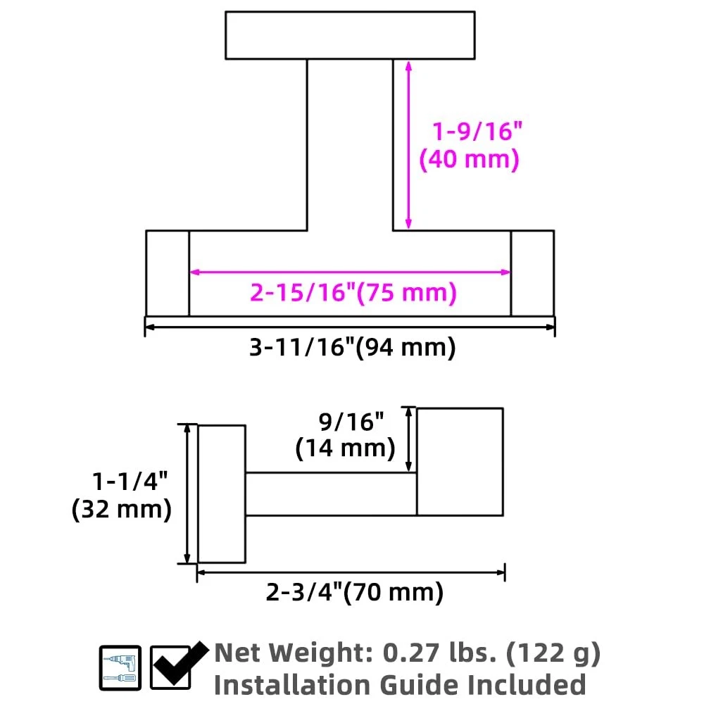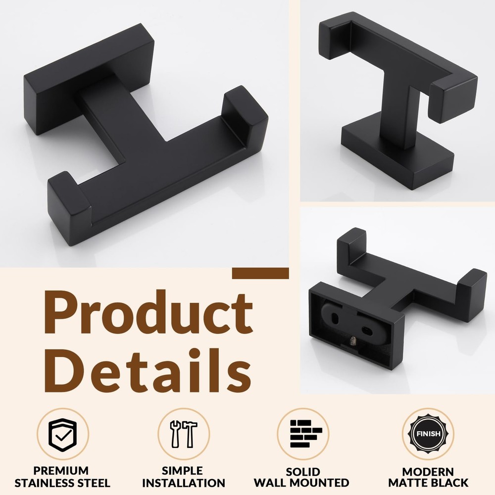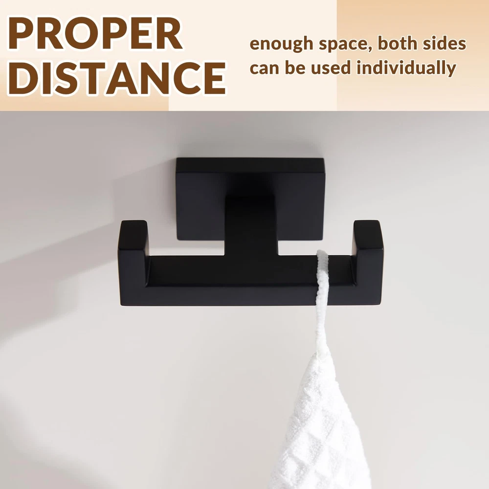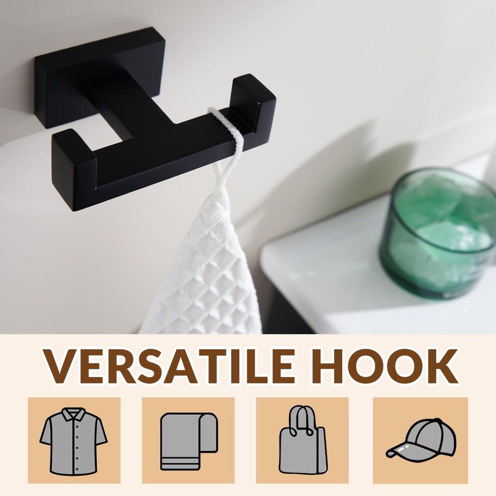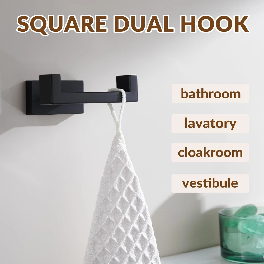 eBay Product Listing Welcome to Our Store! Double Robe Towel Hook, Stainless Steel Square Dual Coat Hook, Utility Bath Kitchen Storage Hanger Holder, Matte Black Description Dual Towel Hook, Multipurpose Square Coat Robe Holder, Modern Home Storage Organizer FEATURES 1. Elegant clothes holder can accommodate in various roomy or small rooms, occupies little wall or closet space, get rid of floor or counter place. 2. Enduring, stand-out style adds a casual and contemporary appeal to your remodeled room, never out of date and reliable. SPECIFICATIONS Finish: Matte Black Net Weight: 0.27 lb(122g) Material: Stainless Steel Installation Method: Wall-mounted DIMENSIONS Height of the upward hook: 9/16"(14mm) Distance Between the Hooks: 2-15/16"(75mm) Overall Size: L 3-11/16" x D 2-3/4" x H 1-1/4"(94 x 70 x 32mm) PACKAGE INCLUDES Coat Hook x 1 PCS Mounting Hardwares x 1 SET CARE AND MAINTENANCE 1.ONLY clean with a soft, damp cloth gently. 2.DO NOT USE polish, detergents, abrasive cleaners, organic solvents, or acid as they may harm the protective finish of your bath accessories. 3.Maintenance period is 1-2 months, this care will maintain the metallic gloss finish. WARM PROMPT 1.Due to light influence and display resolution, pictures and objects may have slightly color aberration. 2.Manual measure may occurs a little dimension deviation, please in kind prevail. 3.NOTE: All photography props are NOT included in the package. Features SECURE FUNCTIONAL, high double upward hook can securely hold various items, protects objects from falling off. Organizes additional storage, keeps stuffs in orderly MULTIPURPOSE ORGANIZER , great substitutes to replace the old or broken one. Can hang towels, clothes, bags or others. Great addition for a comprehensive bathroom upgrade STYLISH PERSONALIZED APPEARANCE, square profile with clean lines, deburred all around without rough edges, for a smooth touch. More generous and convenient to use in your daily life. Product size: L 3-11/16" x D 2-3/4" x H 1-1/4"(94 x 70 x 32mm). Net weight: 0.27 lb(122g) CLASSIC CONCISE STYLE, understated matte black paint anti-glare, reduces reflection, easy to clean. Adds elegant and pleasing visual effects on your bedroom, bathroom, kitchen, toilet etc UTILITY SPACE SAVER & CONCEALED INSTALLATION, moderate size will not take up much space, easy to items while optimizing space. Hidden screw installation, enhances the whole look Return Policy All our products come with a 30-Day Return Policy. If you are not 100% satisfied, please contact us to arrange a return or replacement. We offer free shipping on returns and will provide a prepaid return label. To initiate a return, please contact our customer service team through eBay messaging. We will guide you through the process and ensure your issue is resolved promptly. Shipping Information We ship to the address provided on eBay. Please ensure your address is correct. Delivery usually takes 2-4 business days. If there are any delays, please allow an additional 1-2 business days. We use reliable shipping services such as UPS, FedEx, and USPS. We only ship within the contiguous United States and do not offer local pickups. Shipping is free on all orders, and tracking information will be provided once your order has been shipped. If you have any questions about shipping, please contact us. Contact Us If you have any questions, please contact us via eBay message. We respond within 1 business day. Our customer service team is here to assist you with any inquiries or issues you may have. Customer satisfaction is our top priority, and we are committed to providing you with the best shopping experience. Please do not hesitate to reach out to us. About Us We are committed to providing high-quality products, competitive prices, and excellent customer service. Our goal is to make sure you are completely satisfied with your purchase. Thank you for your business and the opportunity to serve you. We look forward to providing you with the best possible shopping experience.
