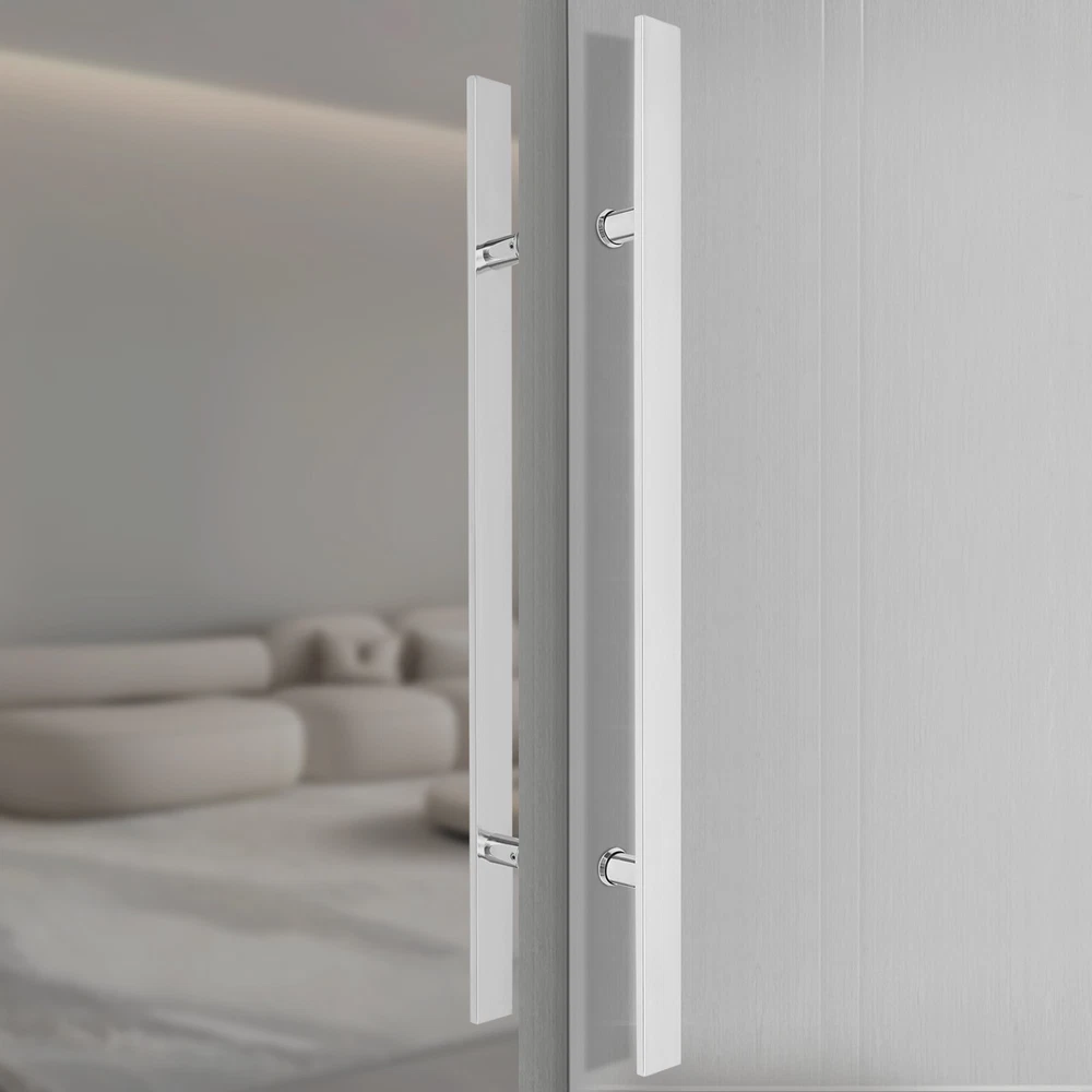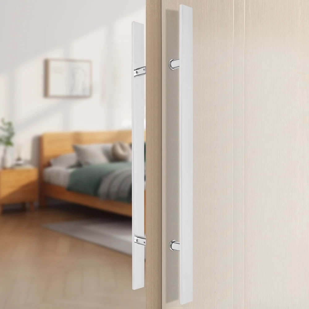 This sleek stainless steel door handle is a game-changer! The polished finish adds a modern touch, and the sturdy build feels premium. Installation was a breeze, and the double-sided design works flawlessly for sliding barn doors. Perfect weight and thickness—no wobbling or bending. Highly recommend for anyone upgrading their space!