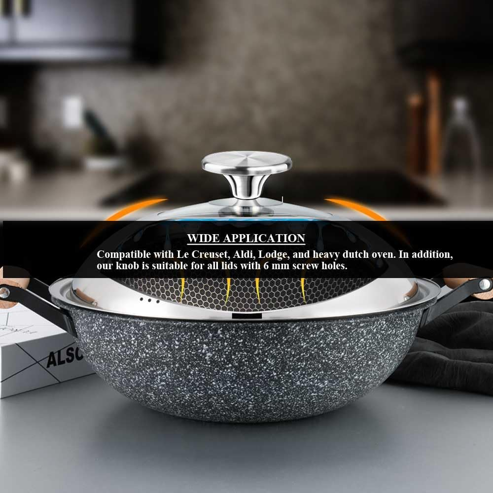 Store New Arrivals Add to Favorite View Feedback Contact Dutch Oven Knob Stainless Steel Pot Lid Replacement Knob for Le Creuset, Aldi Description Item model number SEN220118001 Color Frosted Material Stainless Steel, Alloy Steel Is Dishwasher Safe Yes Item Weight 2.39 ounces Is Oven Safe Yes Shape Round With Lid Yes Lid Material Stainless Steel Finish Type Enameled Package Dimensions 2 x 2 x 1.2 inches Product Care Instructions Oven Safe ✔ WIDE APPLICATION - Compatible with Le Creuset, Aldi, Lodge, and heavy dutch oven. In addition,our knob is suitable for all lids with 6 mm screw holes. ✔ HIGH QUALITY MATERIAL - Made of high quality thicken stainless steel material, it is safe at most of the oven temperature. ✔ EASY TO INSTALL - The pot lid knobs are suitable for 6 mm lid mounting holes. The screws is easy to fix,just put the knob, rubber gasket and metal gasket correctly,and then use screw to tight them. ✔ EASY TO CLEAN - The oven knob is very easy to clean and it is machine washable. ✔ PACKAGE INCLUDED - 1xStainless Steel Knob, 1xScrew, 1xRubber Gasket, 1xMetal Gasket. Product Description WATERPROOF DESIGN This dutch oven knob is made of high grade stainless steel and will not rust when exposed to water. HIGH QUALITY STAINLESS STEEL Made of high-grade stainless steel, it will not rust for a long time, it is strong and not easily deformed. EASY TO WASH The structure of the dutch oven knob is very simple, very easy to clean, and can also be machine washed. WIDE COMPATIBILITY Compatible with Le Creuset, Aldi, Lodge, and heavy dutch oven. also suitable for all lids with 6 mm screw holes. ABOUT US We offer the best prices around on high quality products. Our E-store includes media such as books, movies, music and games while offering electronics, toys, sporting apparel, clothing, tools, general home, garden items and more. SHIPPING We are always working hard to ensure your package arrives as soon as possible. Please understand that some factors like weather, high postal traffic, and the performance of shipping companies are outside of our control. We offer free shipping to the lower 48 states and ship within 2 business days of payment, usually sooner. We do not accept P.O. Boxes. Please provide a physical address. RETURNS We offer a 30-Day Return Policy on items which you are not completely satisfied with. You have the option for a full-refund or an exchange of the item. No returns are available on items shipped outside of the USA. PAYMENT We accept PayPal. CONTACT US This page content is yet to come Please ad us to your favorite seller and visit again later Thank You CUSTOMER SATISFACTION We try our very best to make sure every customer is completely satisfied. If there's a problem, message us! We're happy to help.