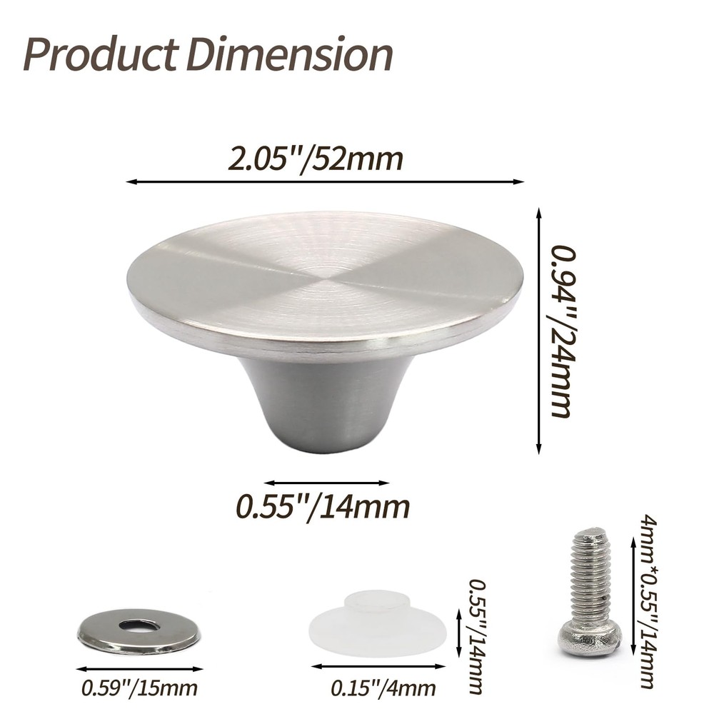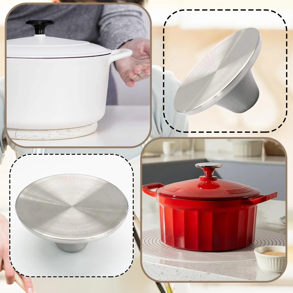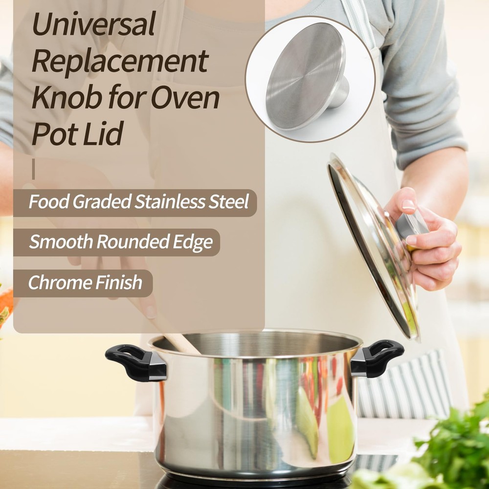 Made of stainless steel and smooth chrome finish, the dutch oven lid knob is solid and smooth to grip. Easy to clean and store for long time usage. Compatible with Le Creuset, Aldi, Lodge, and other cast iron dutch oven. Specifications: Top Diameter: 2.05"/52mm Bottom Diameter: 0.55"/14mm Height: 0.94"/24mm Metal Gasket Width: 0.59"/15mm Rubber Gasket Size: 0.55" x 0.15"/14mm x 4mm (W*H) Screw: 4mm*0.55"/14mm Material: Stainless steel Color: Chrome Quantity: 1 Piece Note: Due to manual measurement, please allow a deviation of 1 - 2mm. Package Included: 1 x Pot Lid Knob for Dutch Oven, 1 x Screw, 1 x Rubber Gasket, 1 x Metal Gasket. Knob Dimension: Top Diameter: 2.05"/52mm, Bottom Diameter: 0.55"/14mm, Height: 0.94"/24mm, Metal Gasket Width: 0.59"/15mm, Rubber Gasket Size: 0.55" x 0.15"/14mm x 4mm (W*H), Screw: 4mm*0.55"/14mm Solid & Quality: Made of solid stainless steel with chrome finish, the dutch oven handle is high-strength, sturdy and wear-resistant. Easy Installation: Placing the rubber gasket, then the metal gasket and screw-in to pot lid knob with the mounting screw. Universal : Universal applied as pot lid with 6mm lid mounting holes for enameled cast-iron dutch oven knob, ceramic cast-iron dutch oven knob and etc.