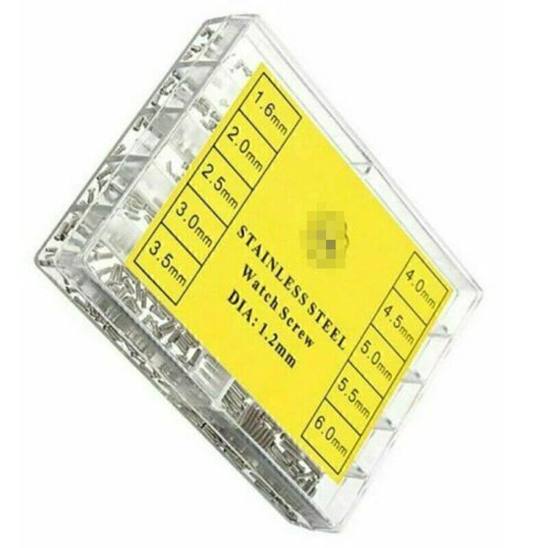 Product Description If you have any questions, please contact customer service first, do not open disputes easily, thank you! Feature: 1. 100% Brand new and high quality 2. Multi sizes small screws, satisfy multi demands. 3. Comes with a inner separate store box with size information the box, clear to recognize different sizes. 4. Stainless steel material, anti rust and durable. 5. Compact size is convenient and easy to take everywhere and easy to use. 6. The high quality store box can be used for other purpose. 7. Great for variousrepairing working like repairing eyeglasses, sunglasses, watches, etc. Specification: Material: Stainless Steel Color: Silver 10 screw sizes (mm) NO.1-- 1.6 mm NO.2-- 2 mm NO.3-- 2.50 mm NO.4-- 3 mm NO.5-- 3.5 mm NO.6-- 4 mm NO.7-- 4.5 mm NO.8-- 5 mm NO.9-- 5.5 mm NO.10-- 6 mm Package List: 1 x Box of Watch Screws (about 600pcs screws) About Us We accept all payments authorized by eBay. About Us We accept all payments authorized by eBay. powered by
