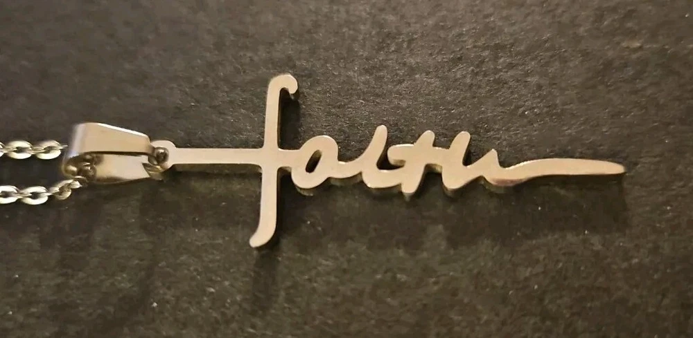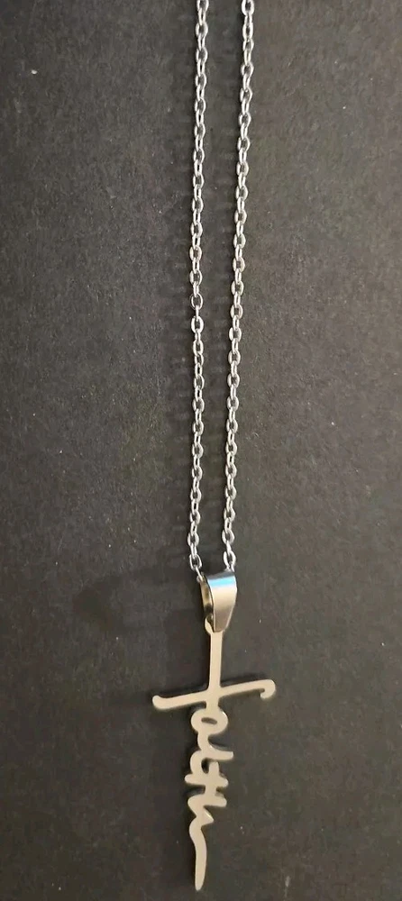This beautiful stainless steel necklace features a cross pendant with the word "faith" engraved on it. The pendant is 18 inches in length and is hung on a lobster clasp chain also 18 inches in length. The necklace is nickel-free and available in a variety of colors including gold, silver, black, and rose gold. The necklace is perfect for a variety of occasions including anniversaries, birthdays, and christenings. It is an excellent gift for Christian believers who cherish their faith. The pendant is a charm type and the necklace is a pendant style. It is made of high-quality stainless steel and has an excellent cut grade. Get this beautiful necklace as a gift for your loved ones or treat yourself to it.